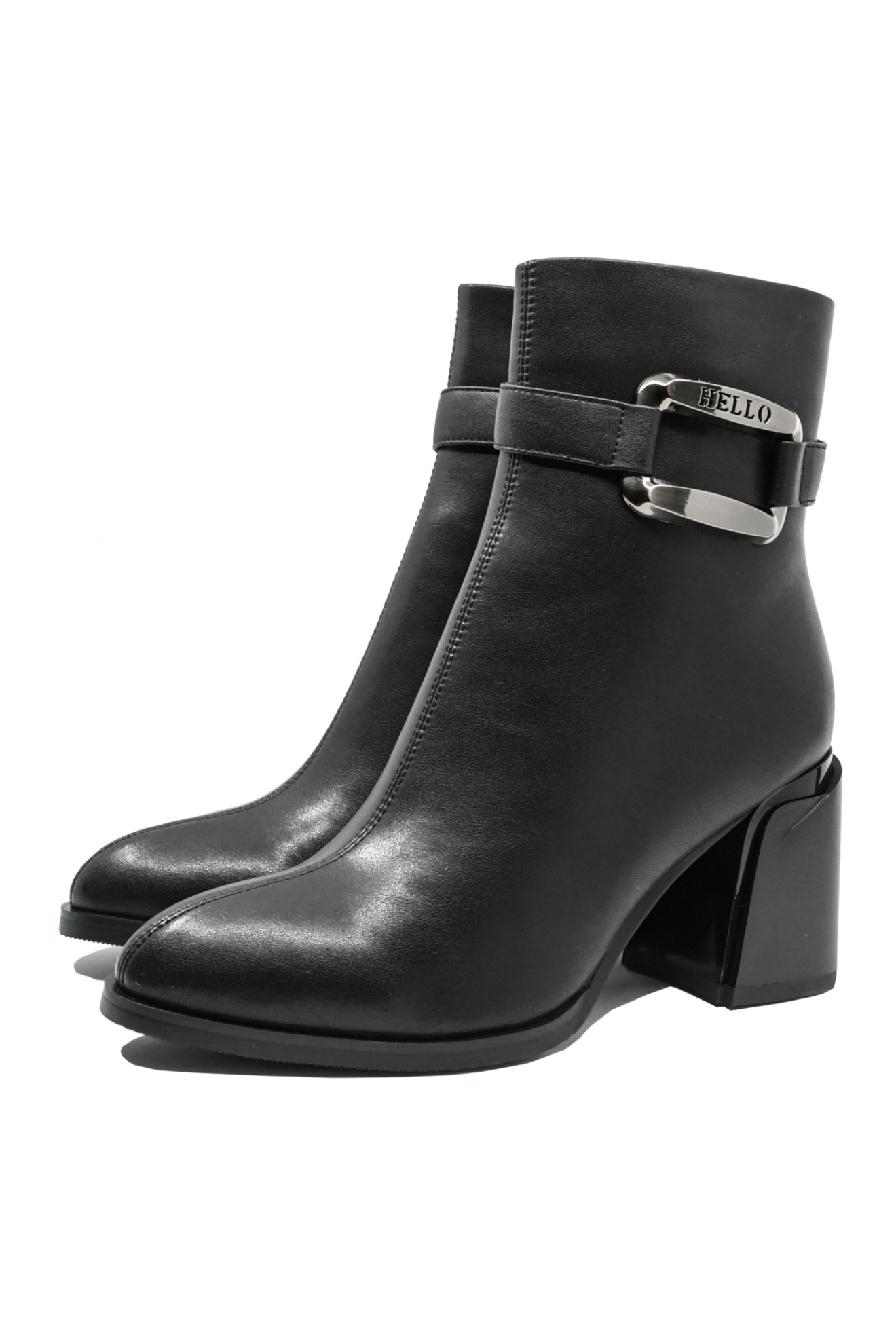 Botine damă cu cataramă decorativă, negre, din piele naturală GOR102