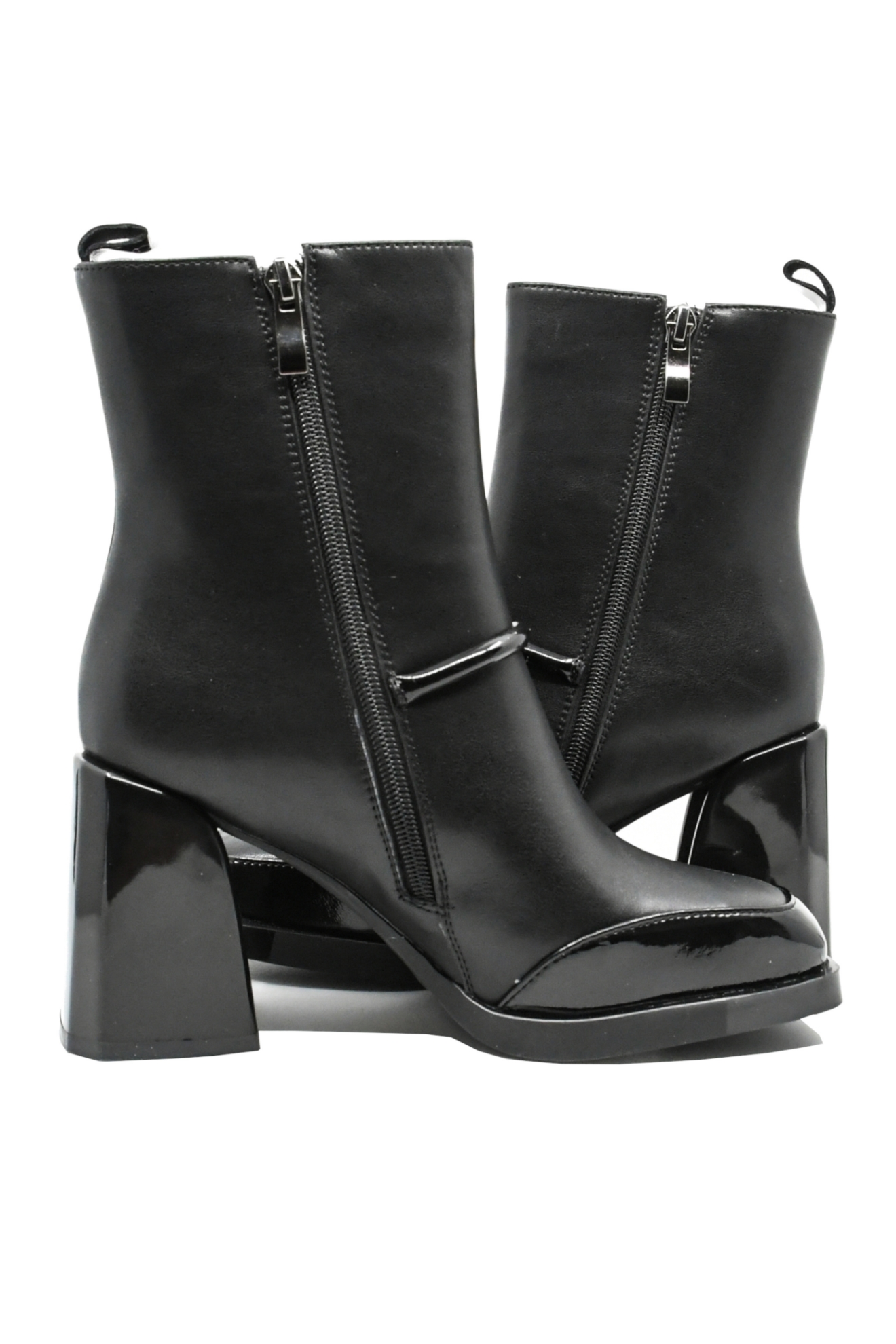 - Talpa joasă 1 cm și toc masiv 8.5 cm cu aspect lucios