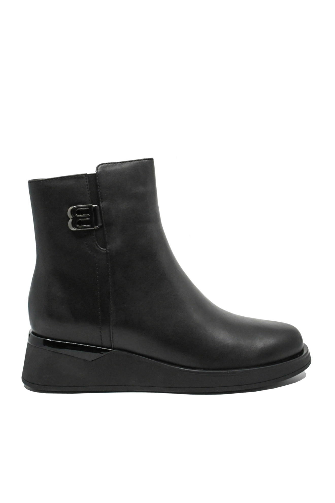 Botine damă cu linii clare și elegante, cu talpa wedge comodă, pentru lucru sau plimbare. Arată bine în orice moment, profesional și stilat în același timp, iar detaliile metalice discrete adaugă interes vizual.