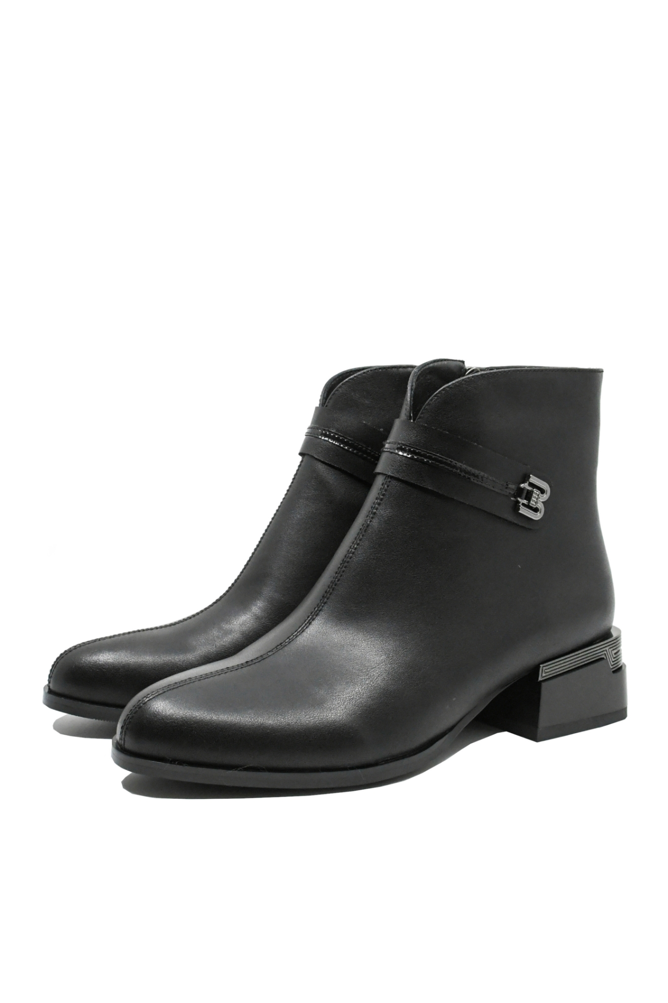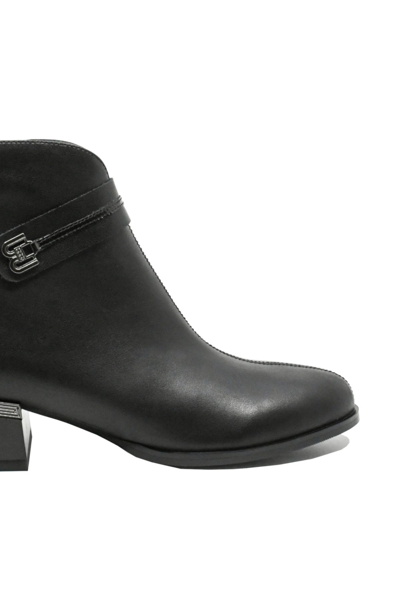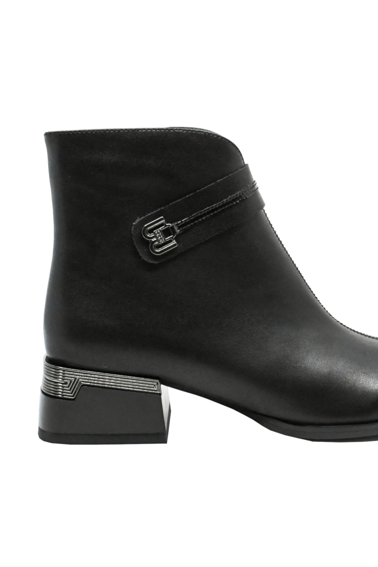 - Baretă suprapusă cu insignă metalică la gleznă și decupaj în față