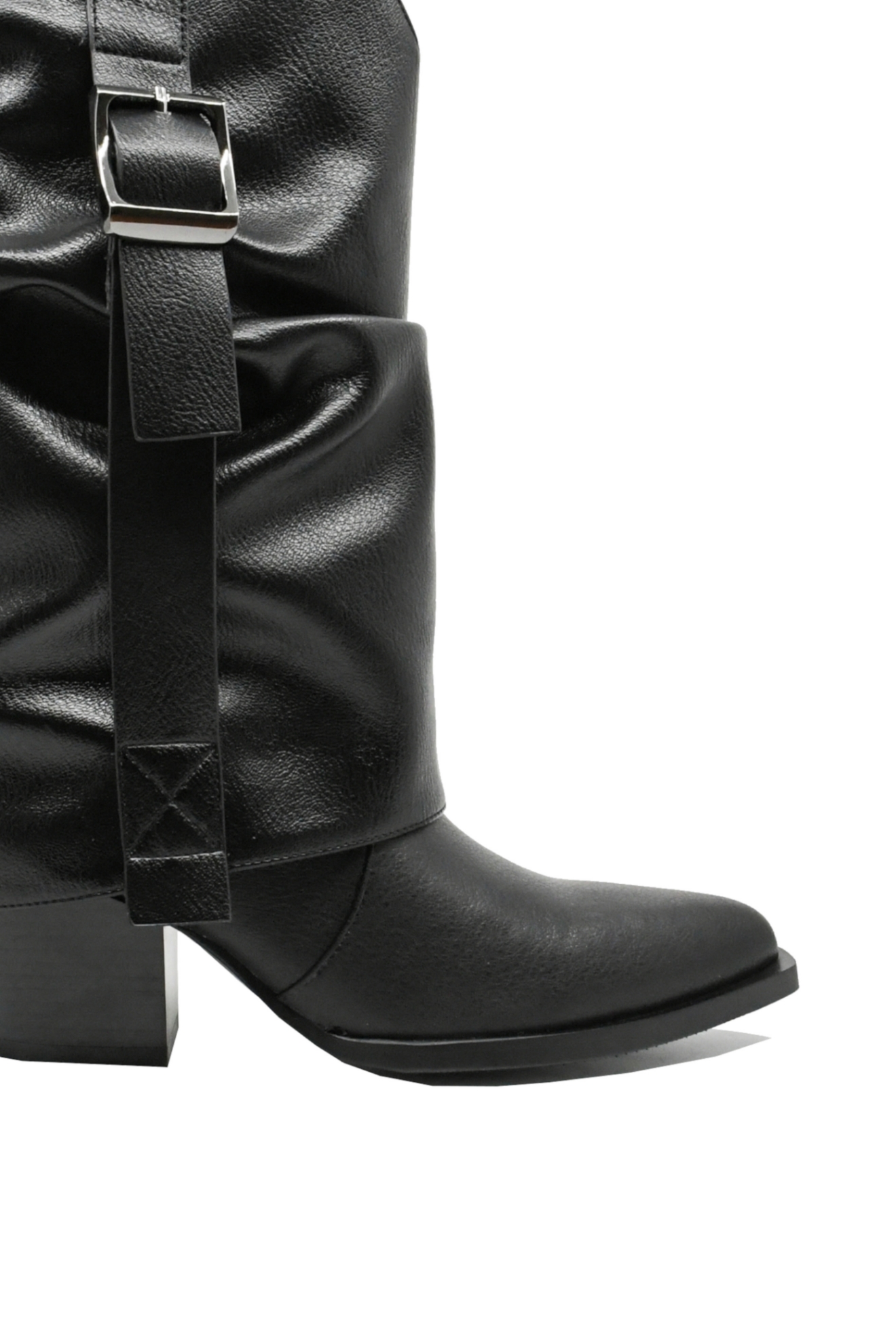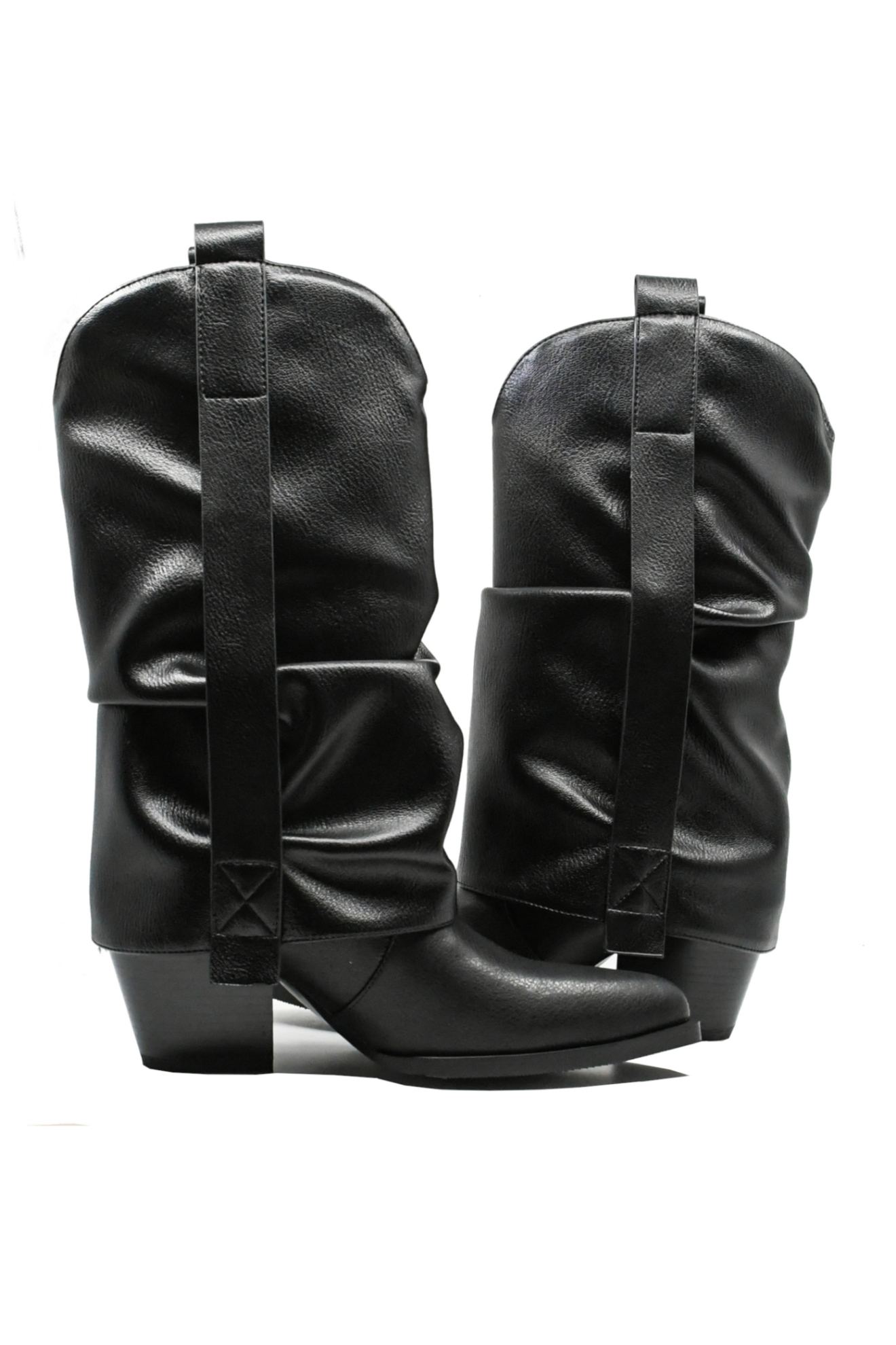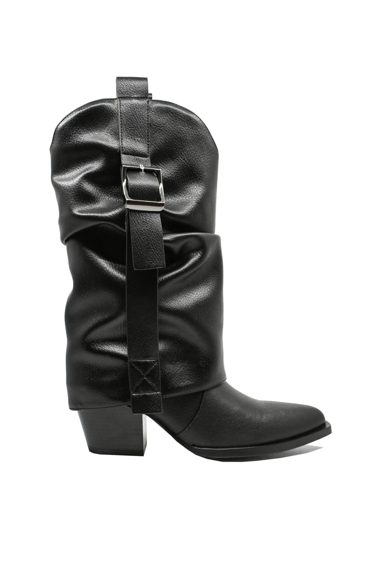 Cizme damă ciocate cu caârmb suprapus încrețit, ce creează ideea western de a purta pantaloni într-un stil foarte modern, elegant și confortabil în același timp. Un model în care poți dansa toată noaptea, poți ieși la plimbare sau la restaurant, te simți bine și faci senzație.