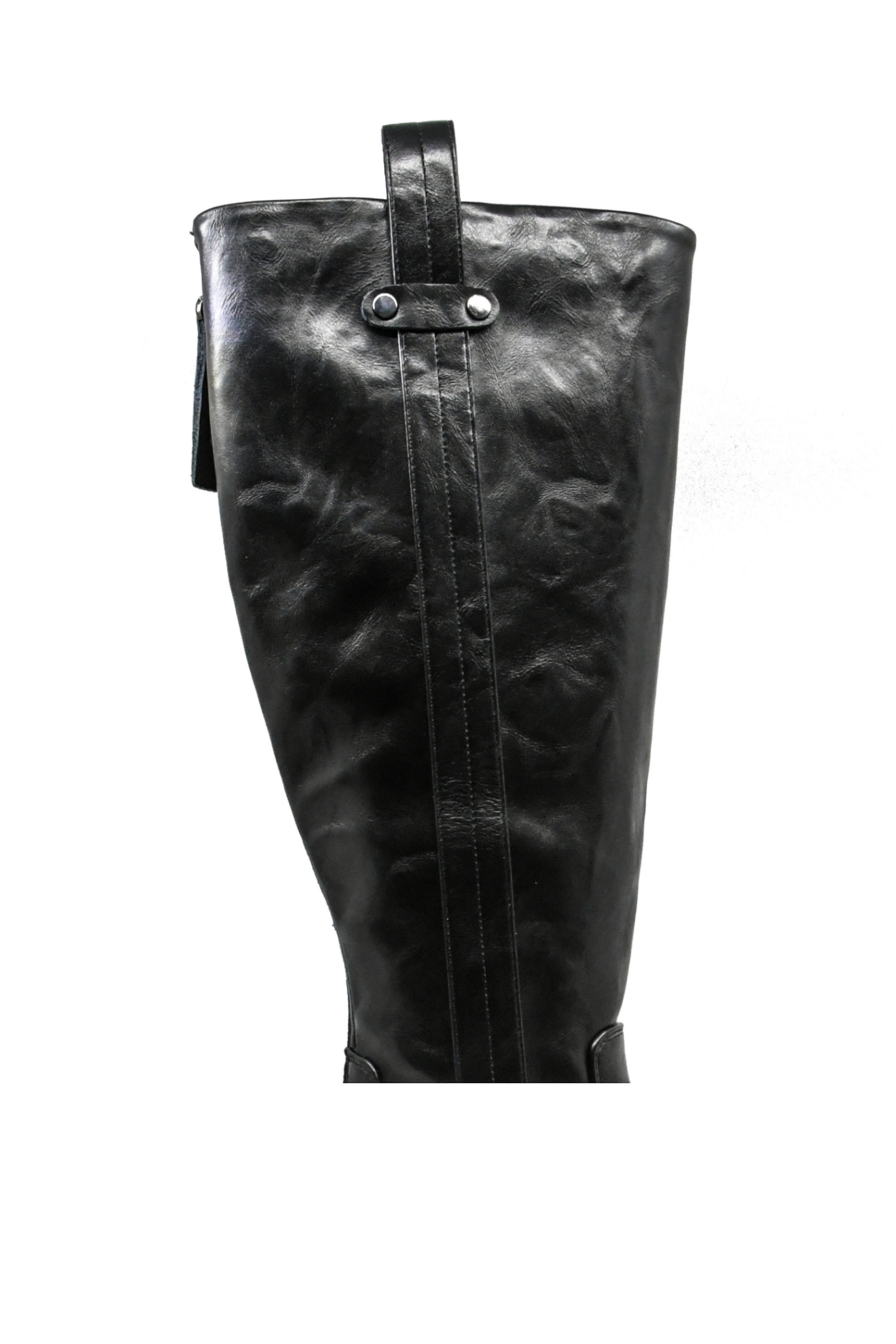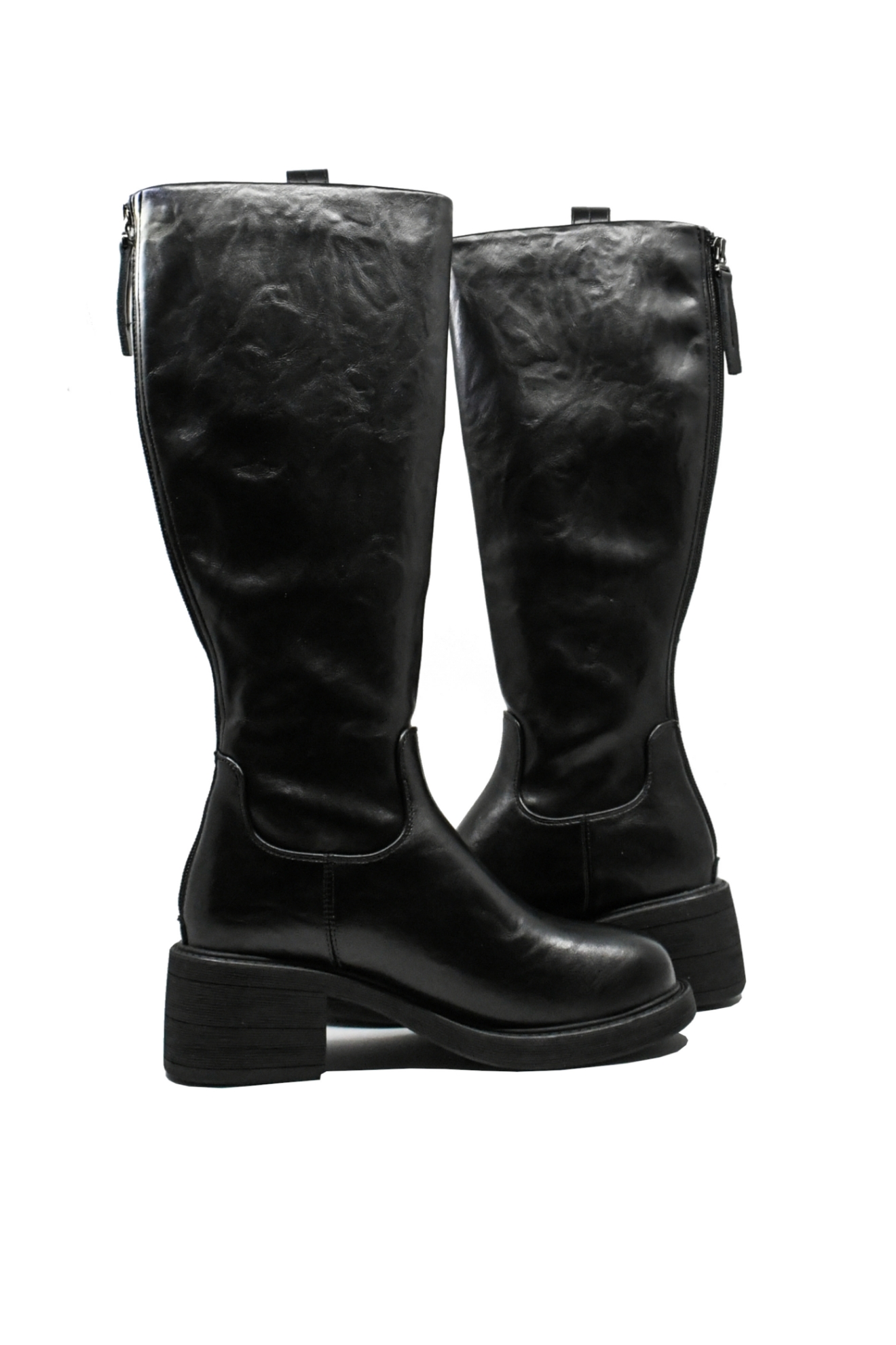 Cizme damă înalte tip riding, cu carâmb moale ce se așează perfect pe picior, talpa groasă și toc masiv mediu, foarte confortabile. Stilate și aspectuoase, ele vor fi cu siguranță motivul pentru care te vei putea plimba ore întregi fără să obosești.