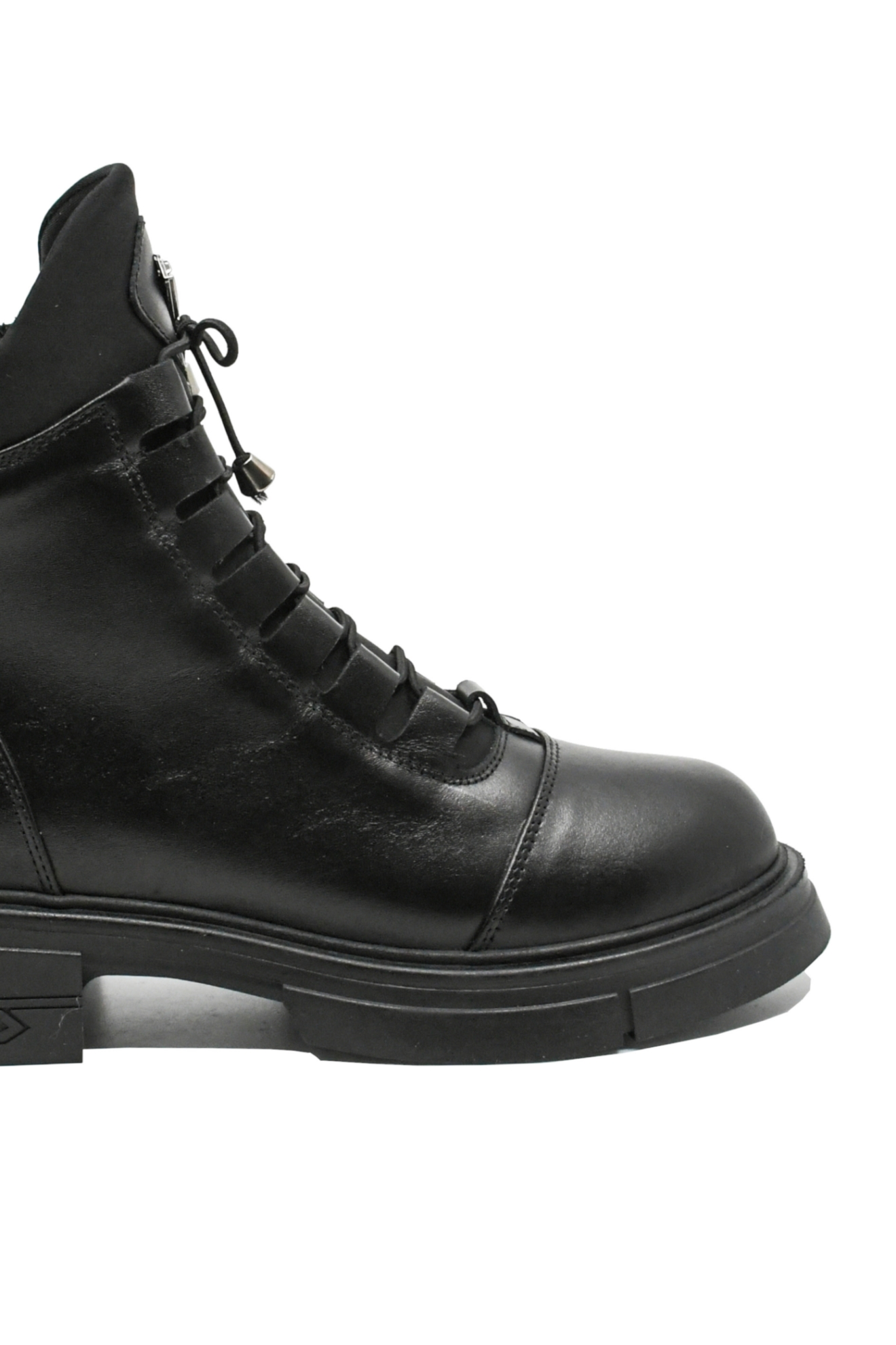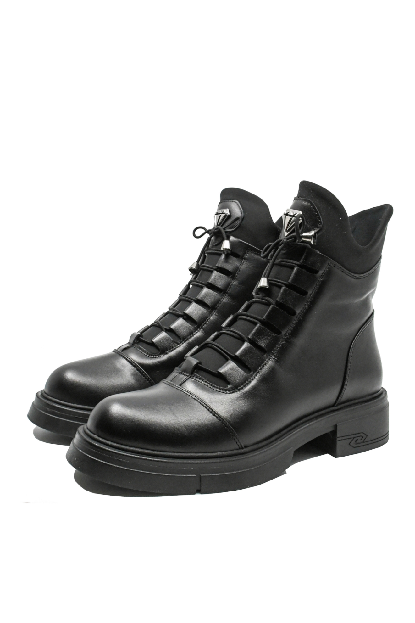 Ghete damă ankle cu inserție elastică la gleznă, șiret subțire decorativă, aplicație metalică ăn formă de diamant, vârf rotunjit spațios pentru degete și talpa mai groasă, comodă.