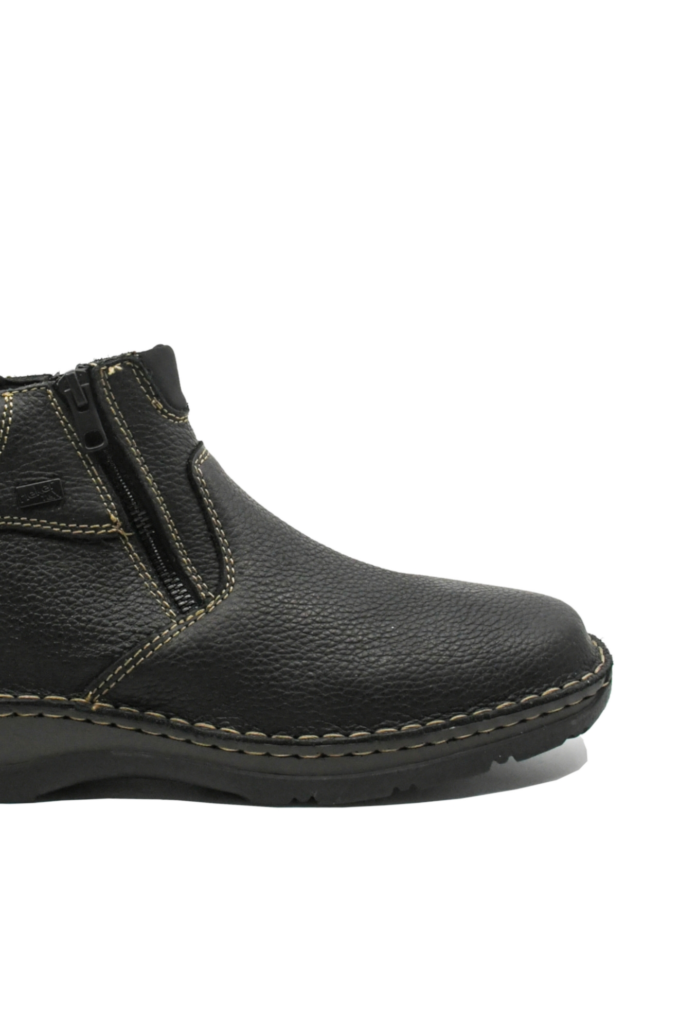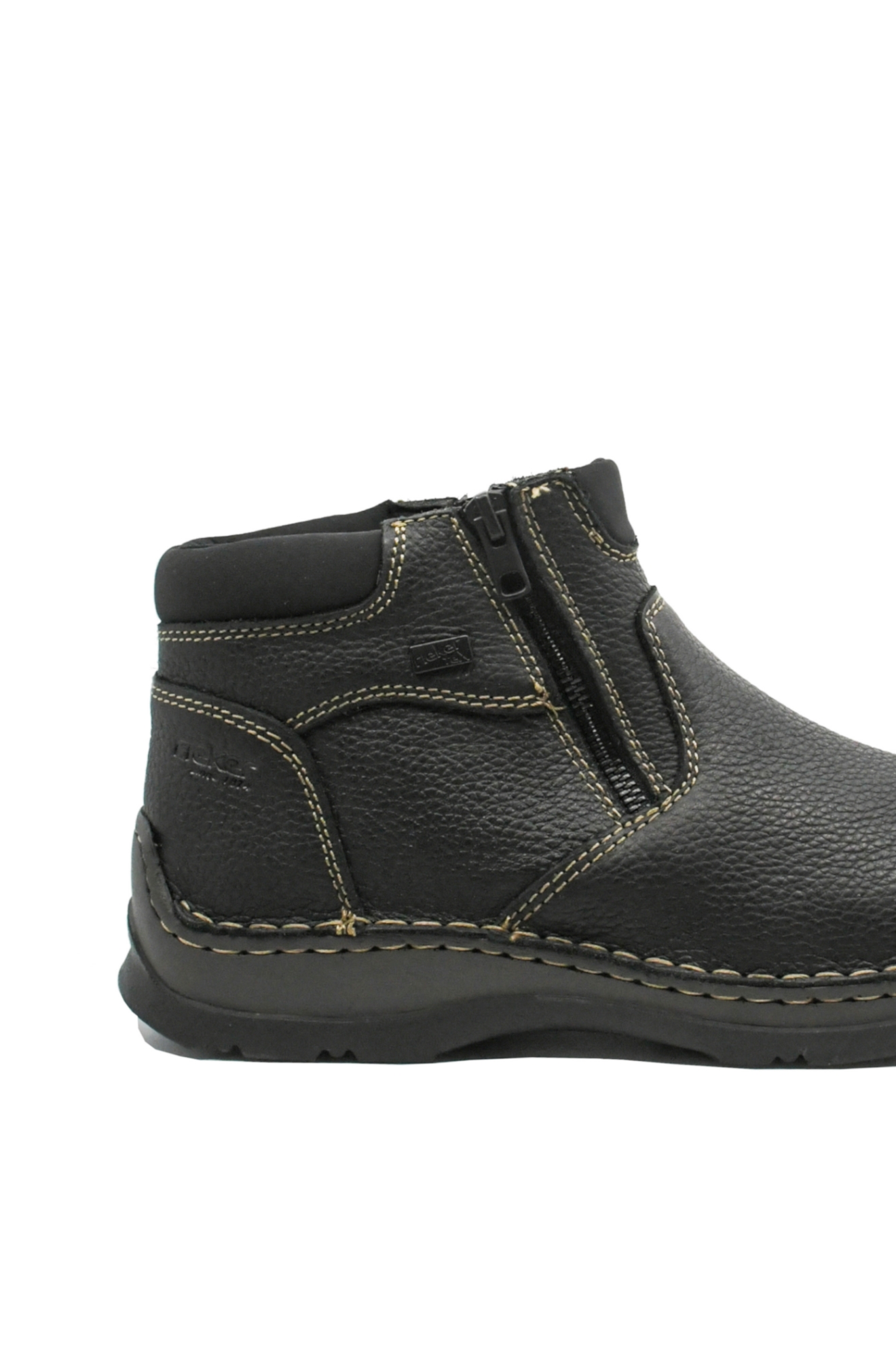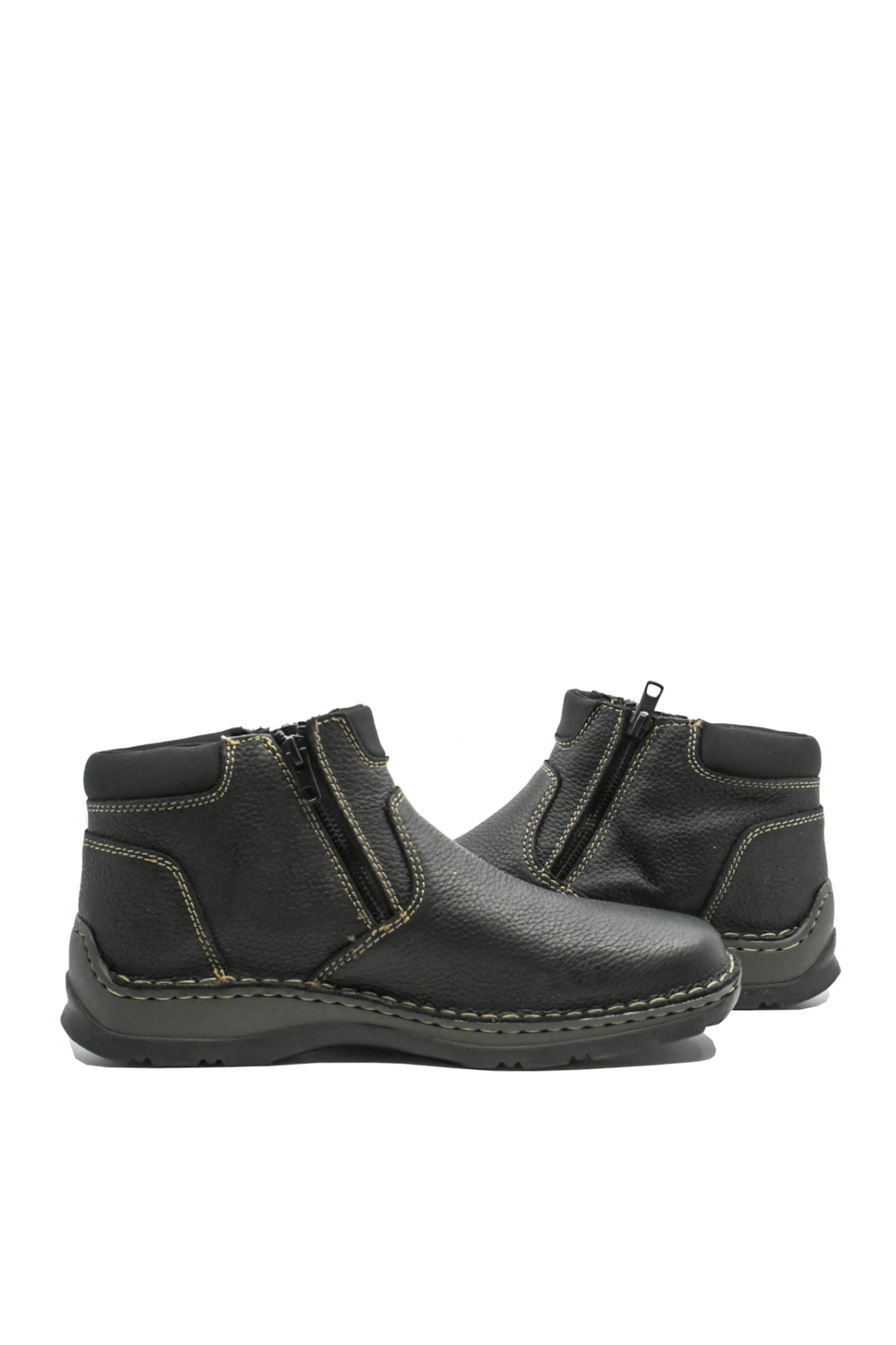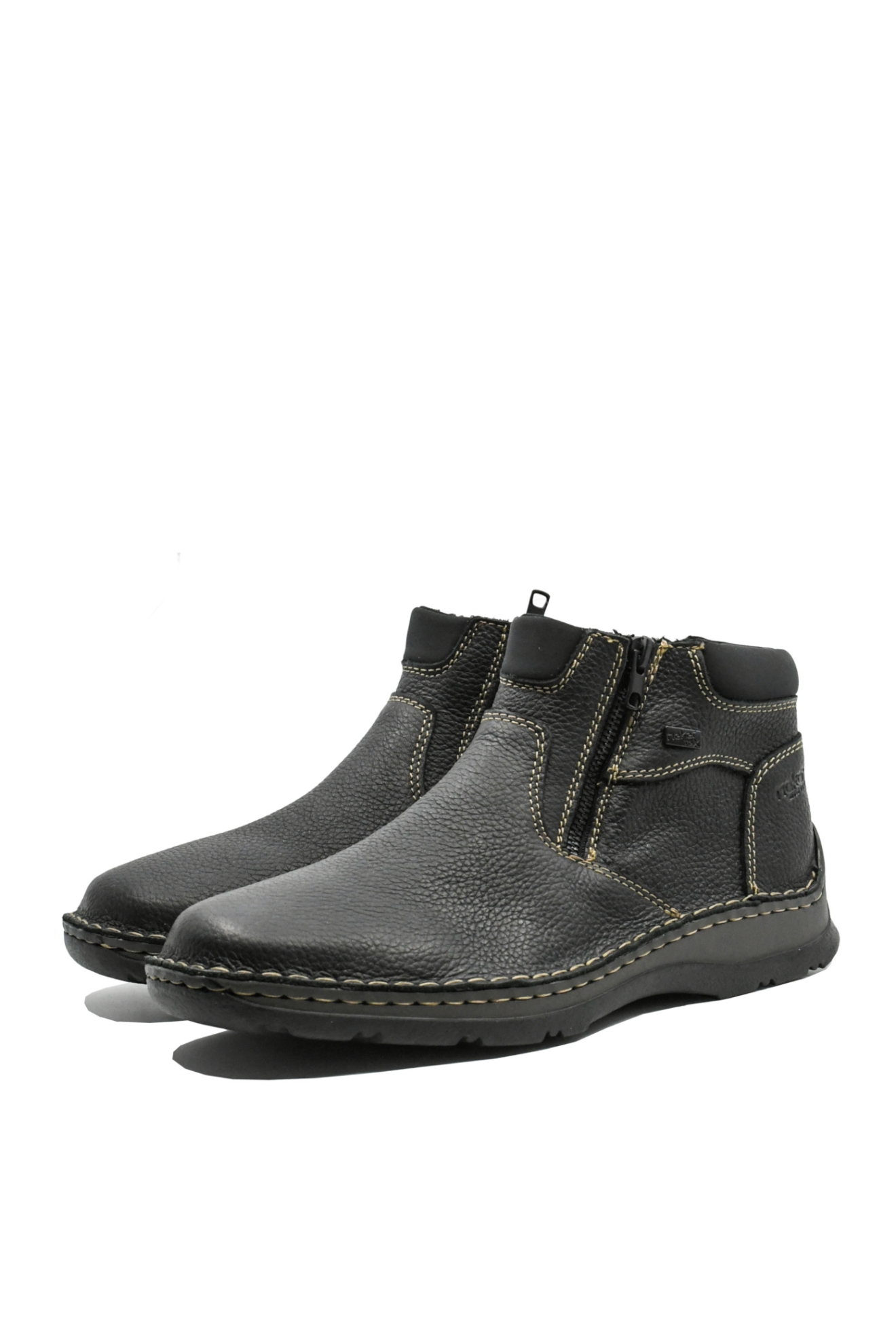 Ghete pentru bărbați îmblănite, solide, din piele cu aspect granulat cazon, cusături decorative inclusiv pe marginea tălpii, cu detalii antialunecare, tot ce e necesar pentru o gheată de iarnă pe care te poți baza.