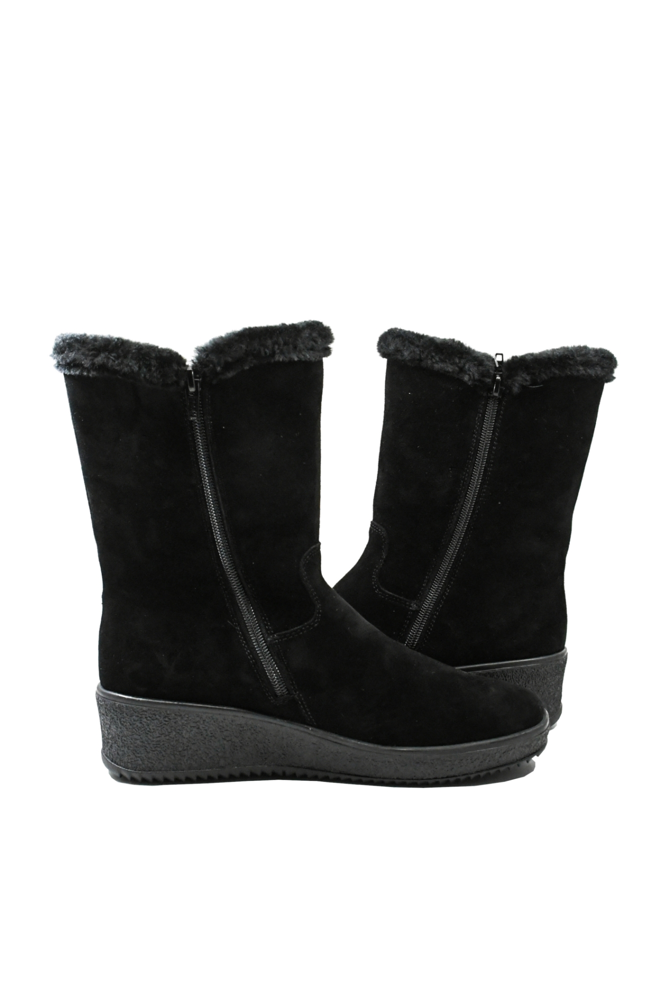 Ghete damă relaxate, la intersecția dintre preț, design și confort. Interior și coroniță de blăniță, talpă joasă ortopedică pentru cea mai bună distribuție a greutății și exterior catifelat atractiv pentru ochi.