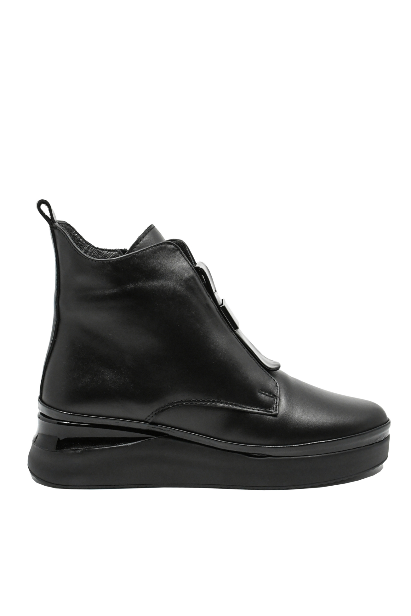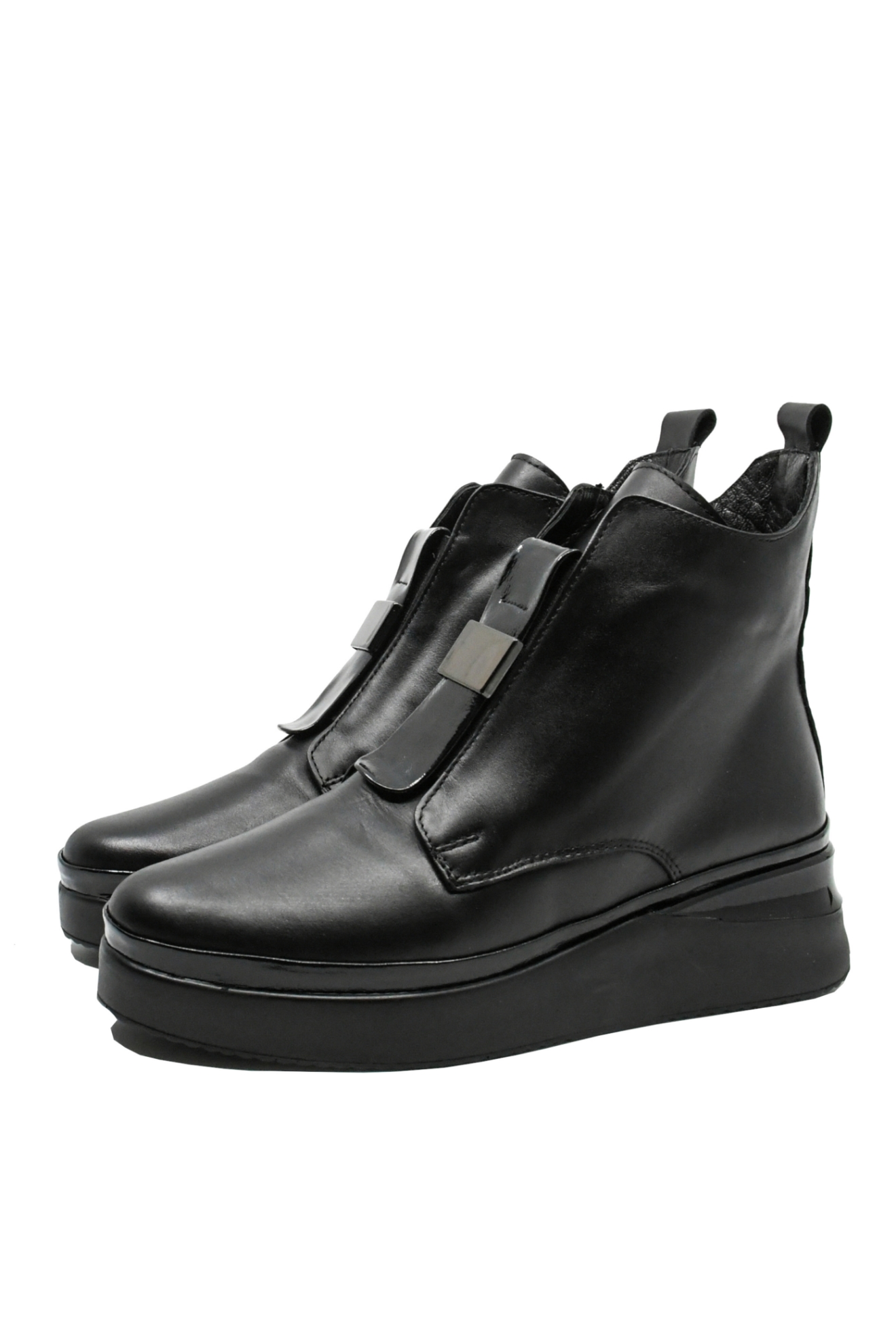 Ghete damă până la gleznă, micuțe, finuțe, cu talpa ortopedică puțin înaltă, din piele naturală cu accente din lac și metalice, destinate să-ți asigure maximum de confort și tracțiune, atunci când ai nevoie cel mai mult.