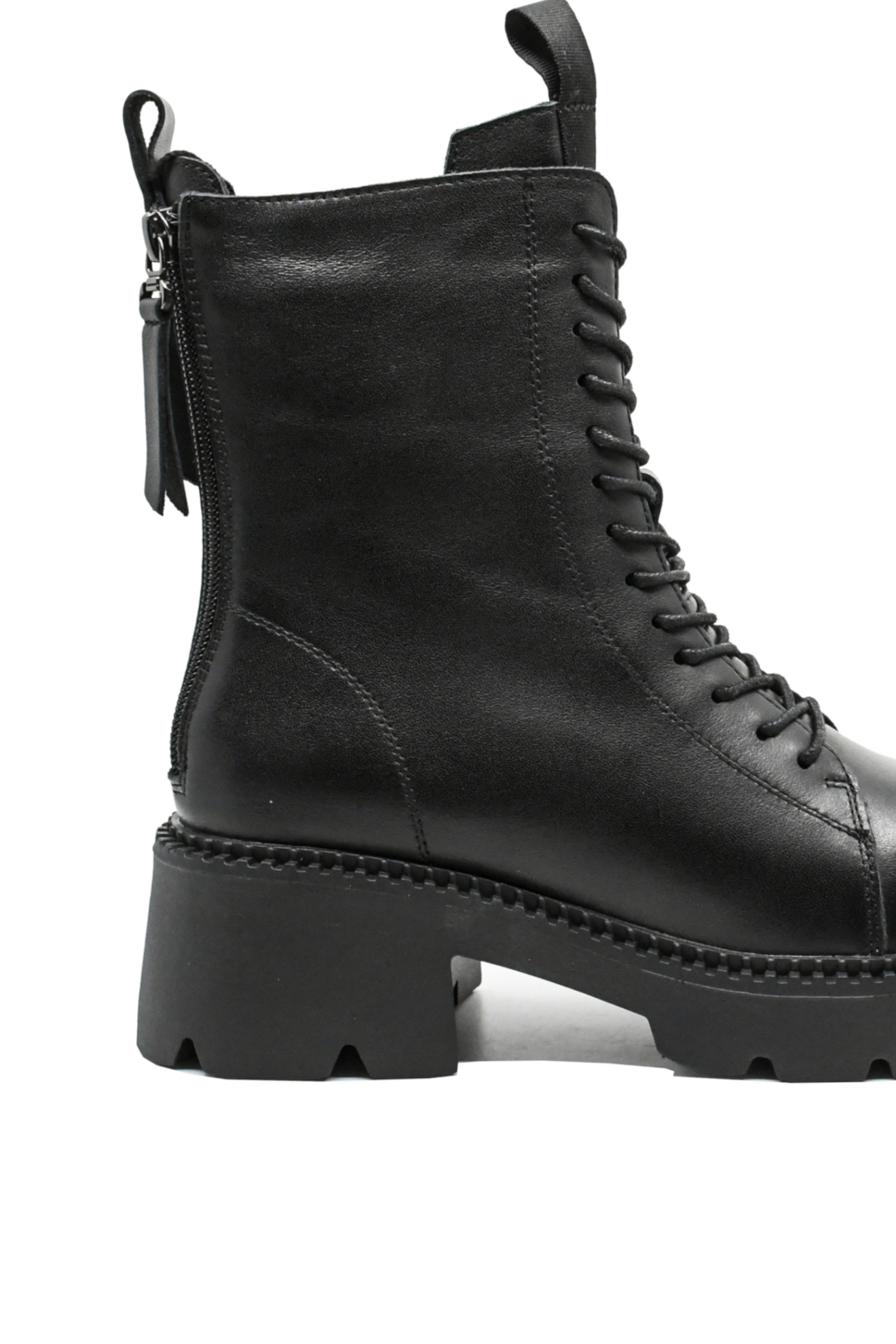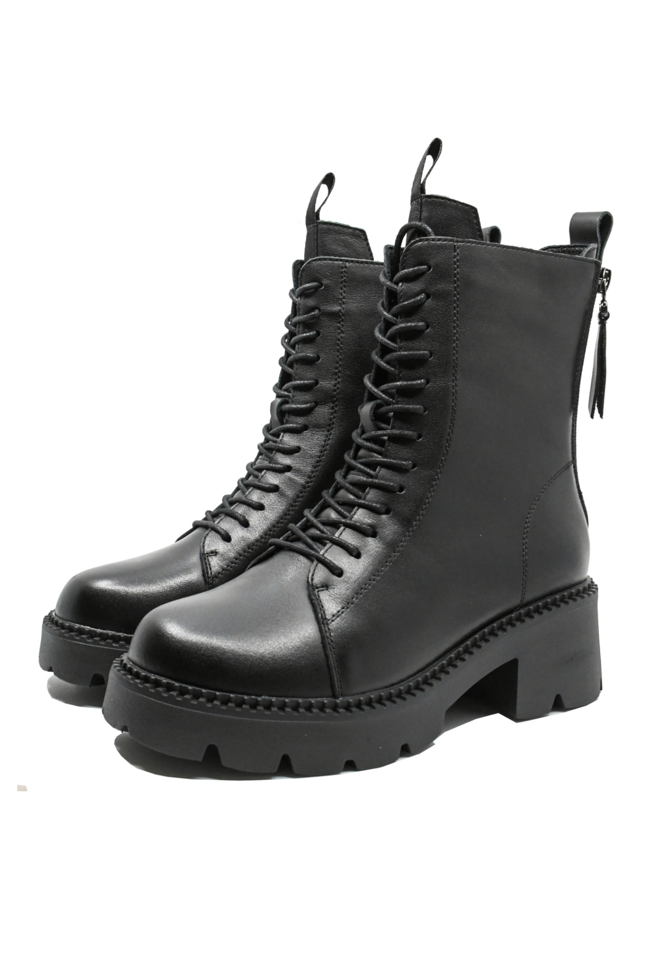 Ghete damă în stil combat clasic, ce îți mențin spiritul tânăr și piciorul confortabil. Cu șireturile până sus și cele două fermoare la spate, ai maximum de flexibilitate și energie pentru orice.