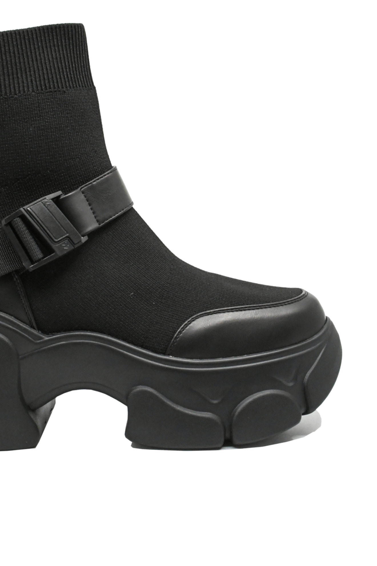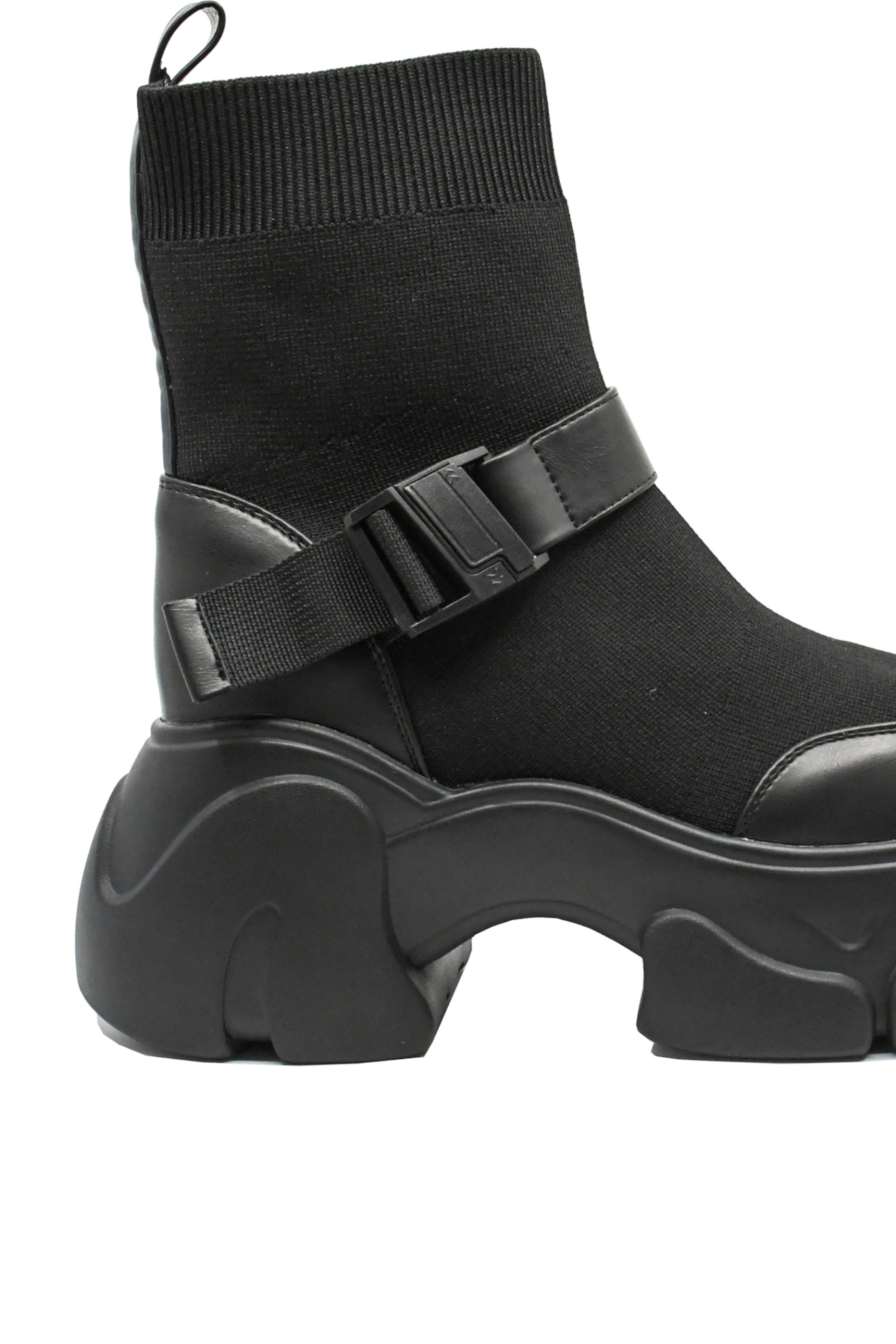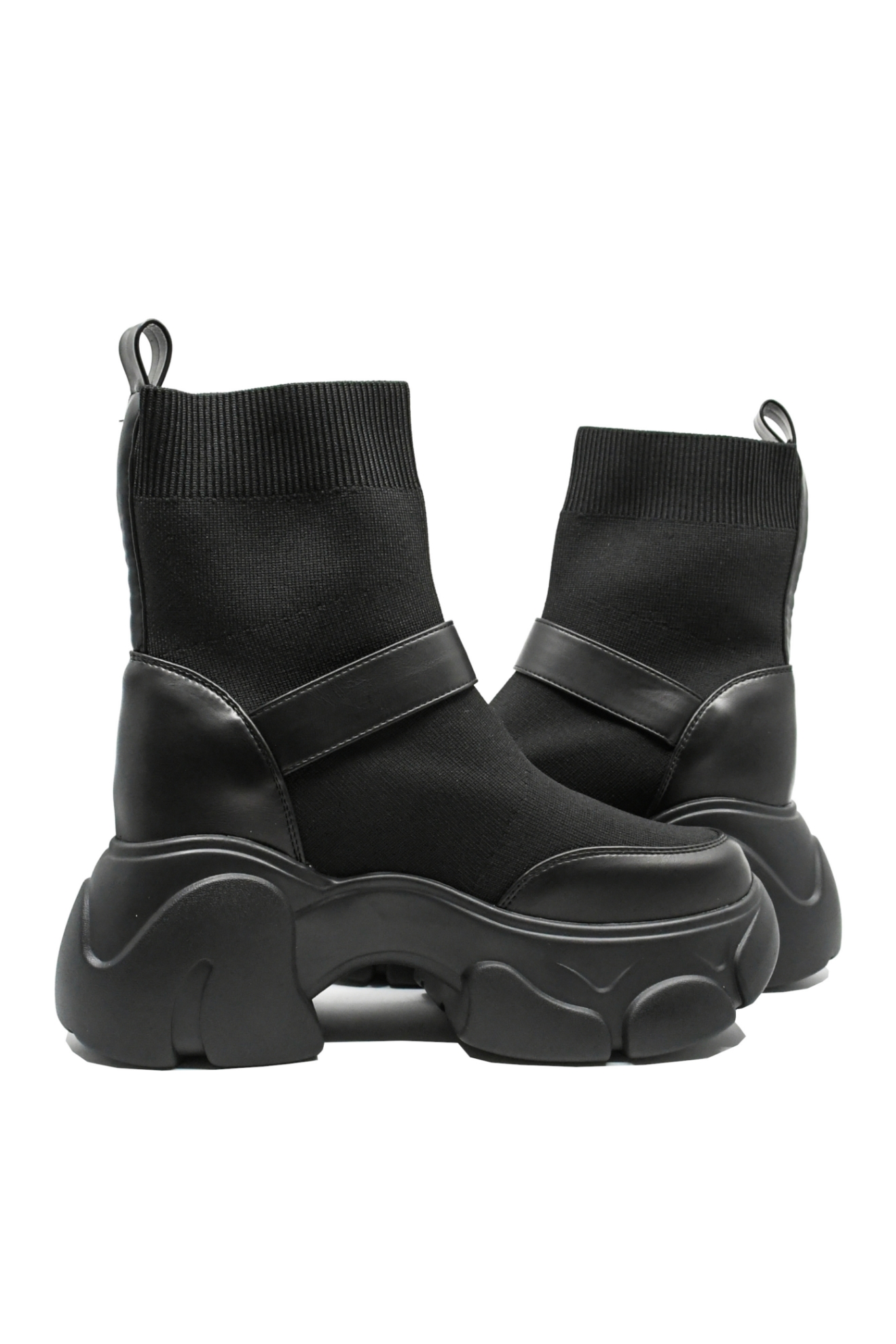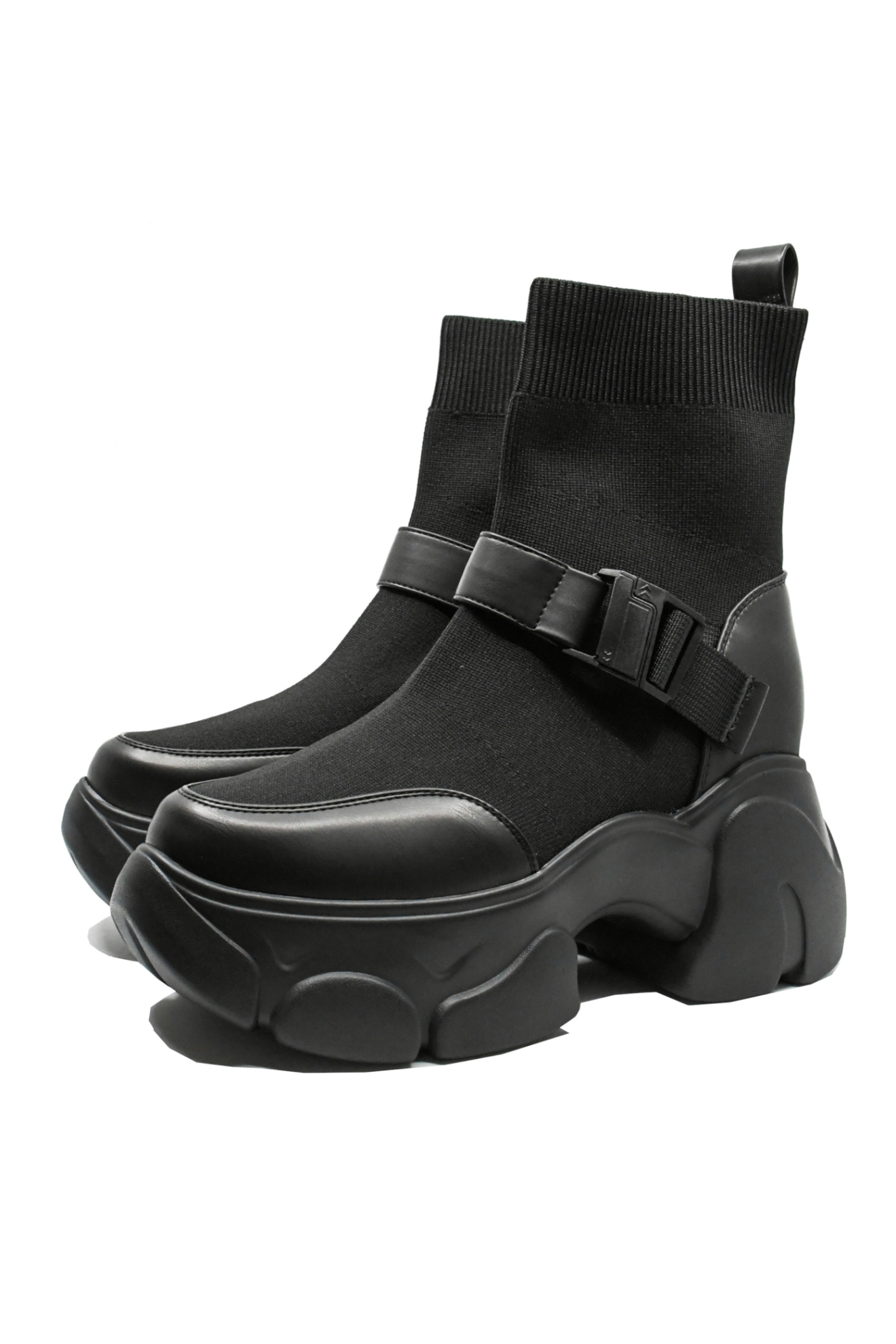 Ghete damă stil șosetă, din țesătură textilă cu garnituri din piele naturală și talpa platformă voluminoasă. Un vibe modern, un stil confortabil, un model ce îți îmbrățișează piciorul atunci când mergi sau stai.