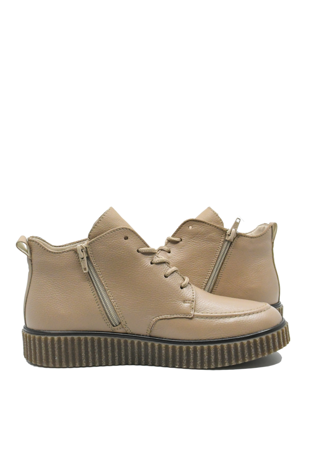 Ghete damă joase cu șiret, care te trec prin orice fel de vreme și activități. Indiferent de planurile tale, îți asigură tot confortul, dar și stilul, pentru că pielea granulată arată bine, la fel ca și culoarea bej deosebită.