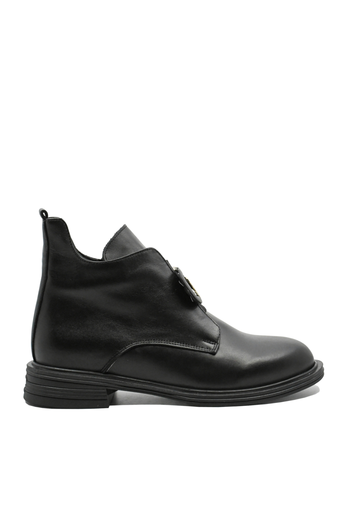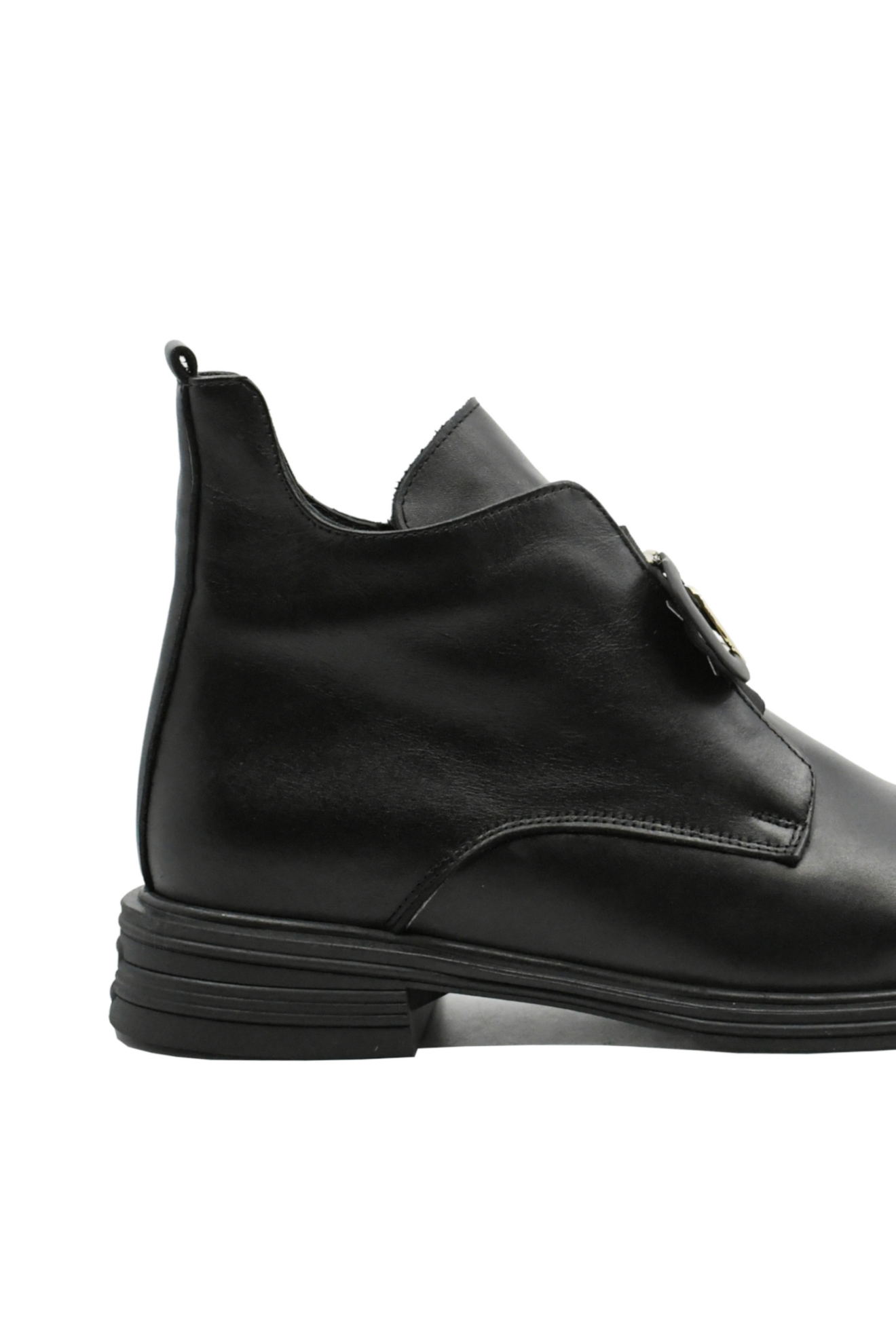Ghete damă cu personalitate, toc mic ușor de purtat, piele moale și decorațiune deosebită negru cu auriu. Le încalți rapid și le porți în fiecare zi sau seară, la serviciu sau la plimbare.