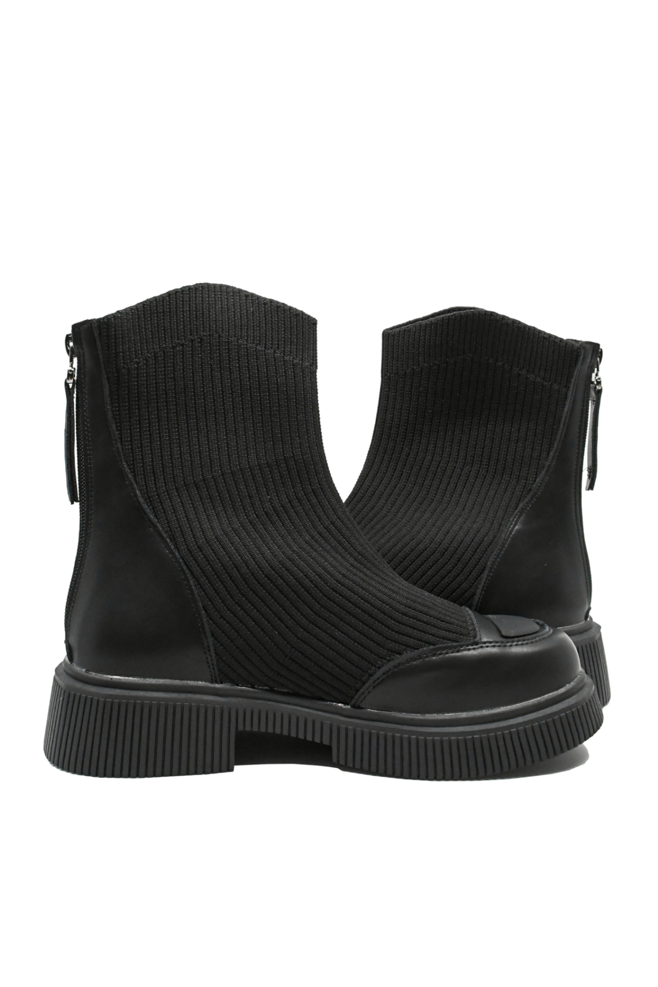 Ghete moderne cu platformă și carâmb textil moale tip șosetă. Partea din piele naturală conferă structura solidă, iar designul din materiale combinate adaugă nota de stil, diferită de orice altceva.