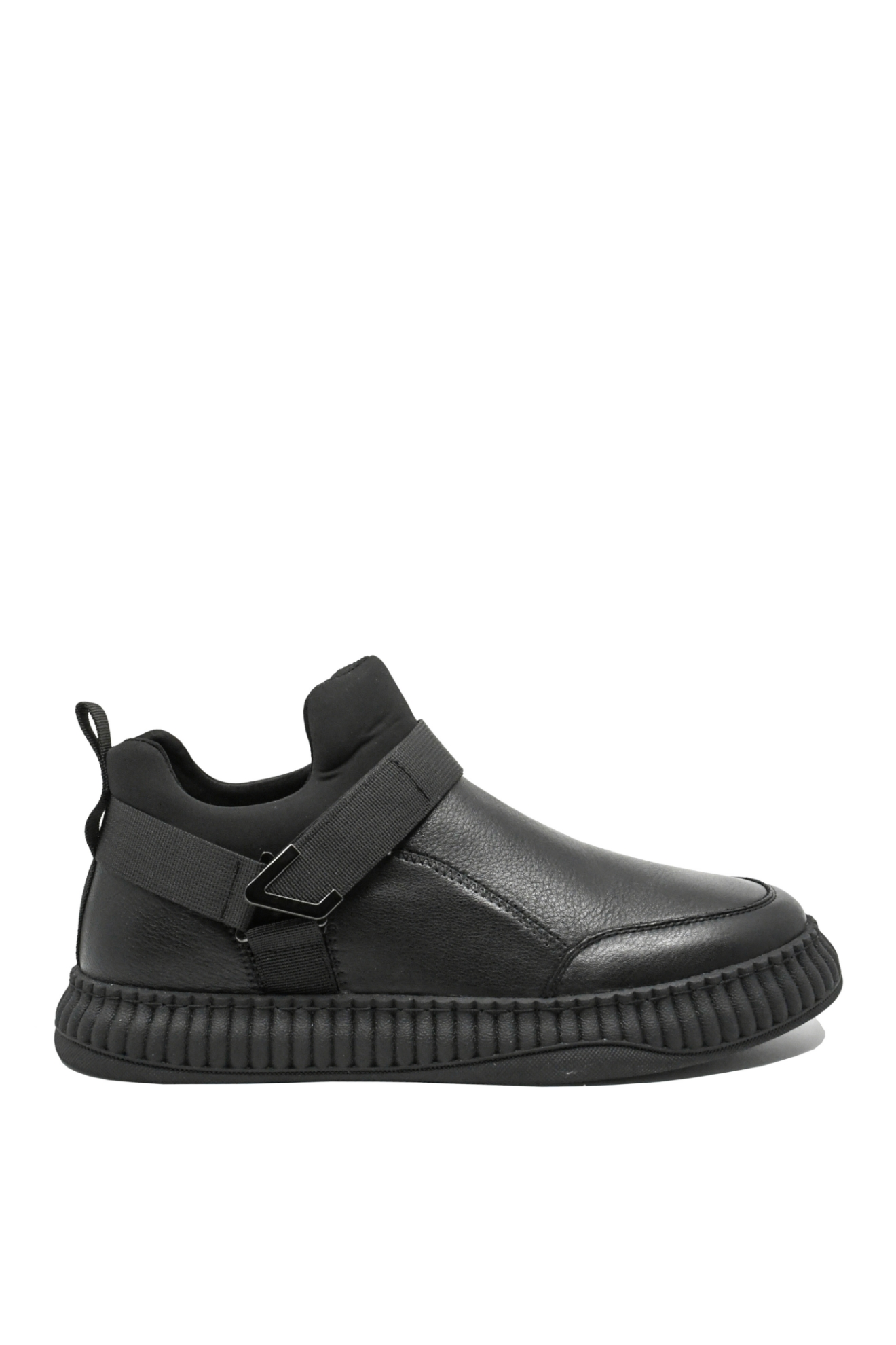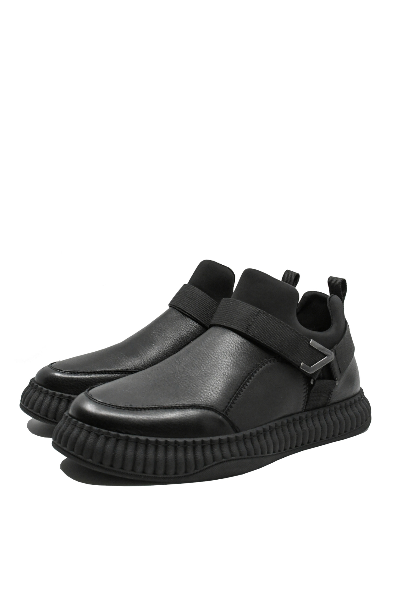 Ghete bărbați casual smart, model slip-on ce se încalță rapid, fără efort, design ușor și look unic, cu o combinație de panglici decorative cu velcro în aceeași culoare și talpa înaltă cu riduri verticale deosebite.