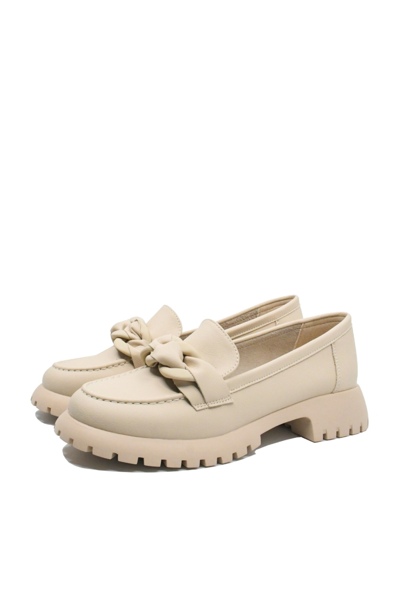 Pantofi loafer adorabili cu platformă, o alegere stilată și sofisticată, ce te încântă cu aspectul deosebit și lanțul decorativ împletit, în timp ce culoarea bej deschis îți complimentează orice ținută.