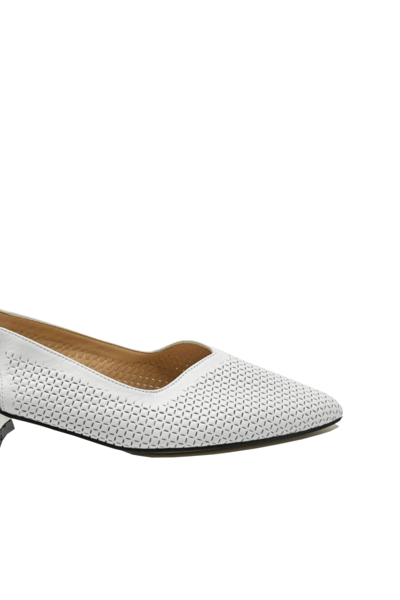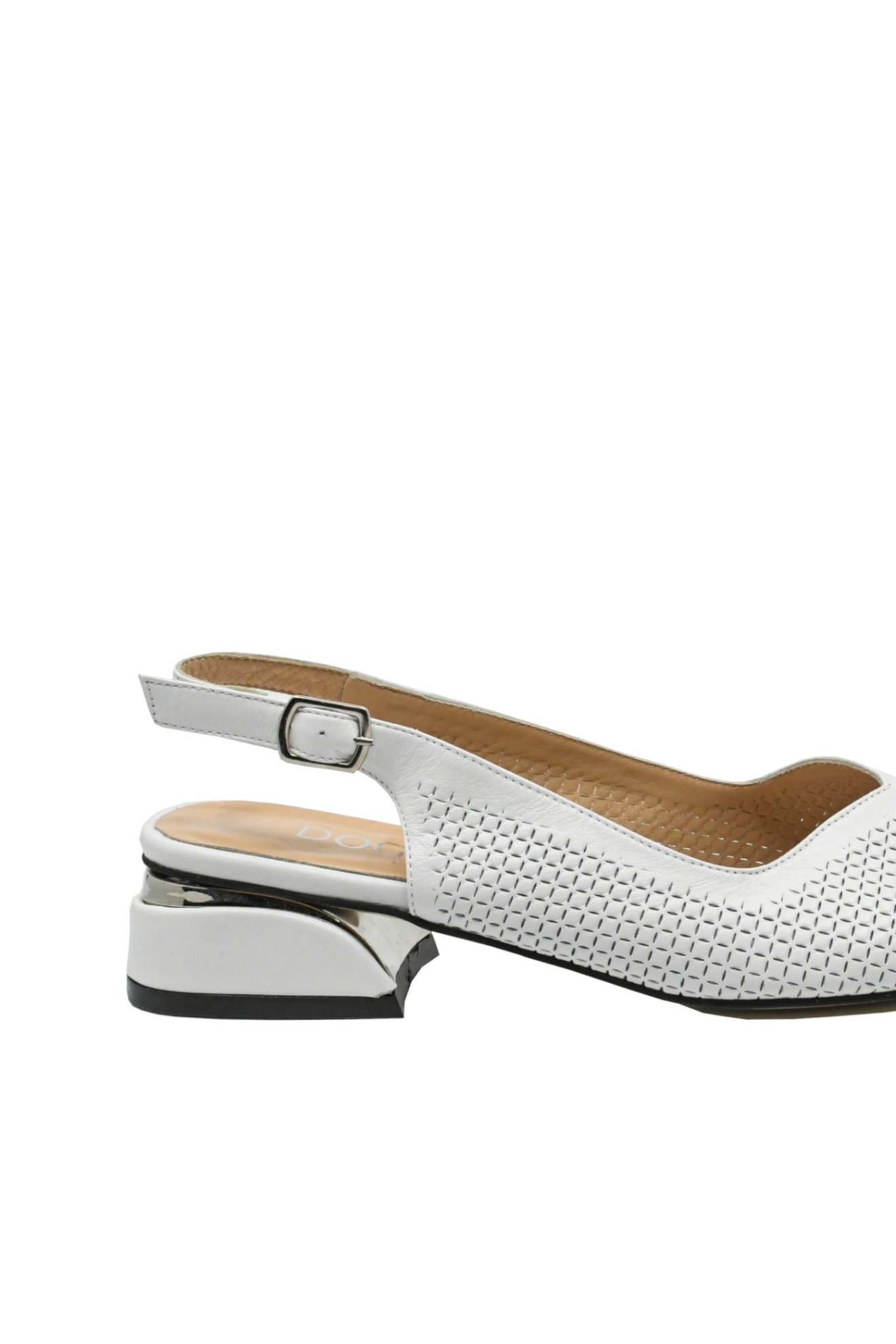 Pantofi decupați din piele naturală cu model geometric perforat, ce fac o tranziție ușoară de la pantofi la sandale de la business casual la chic elegant. Cu tocul mic și pielea moale, treci ușor peste zi, cât mai confortabil posibil.