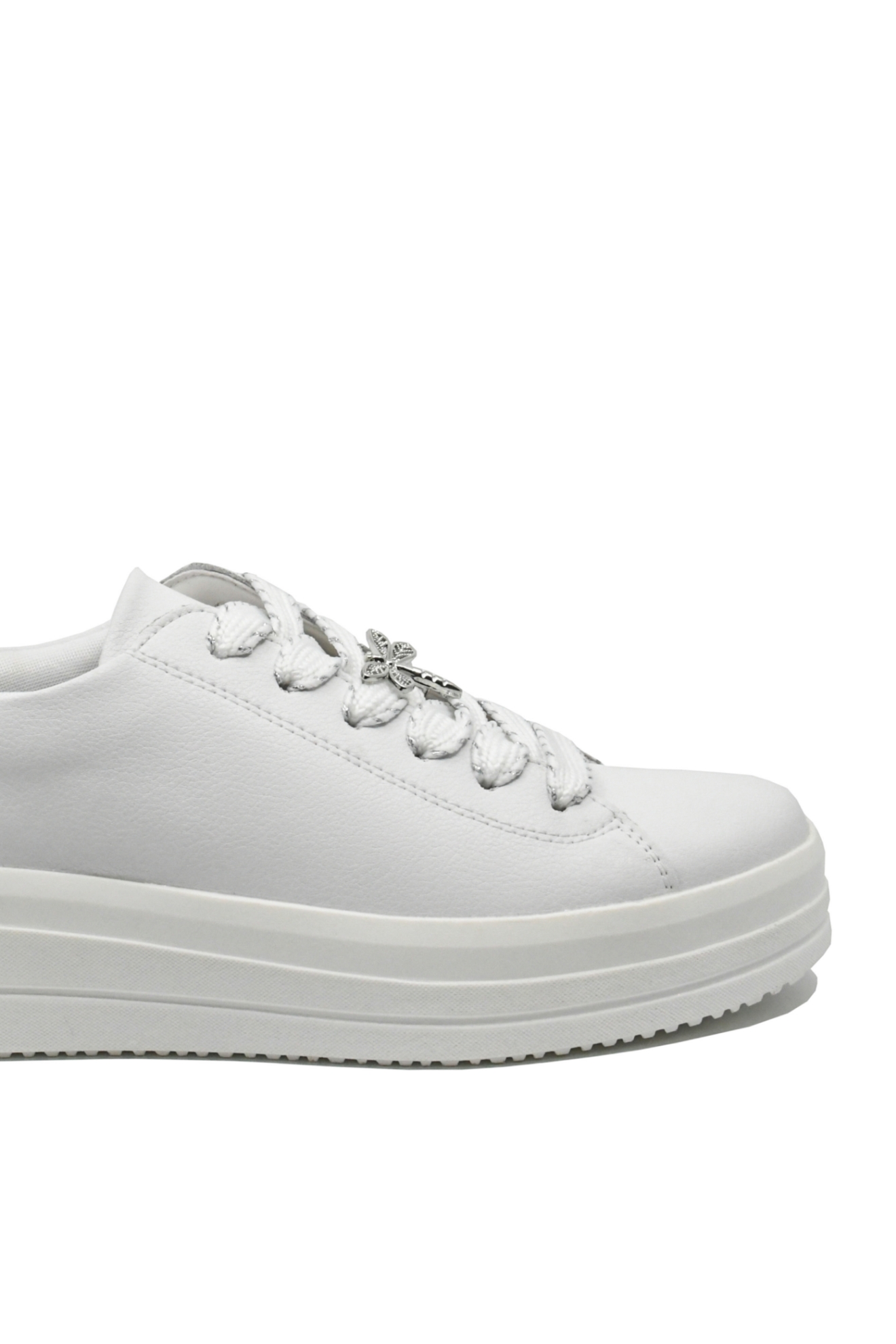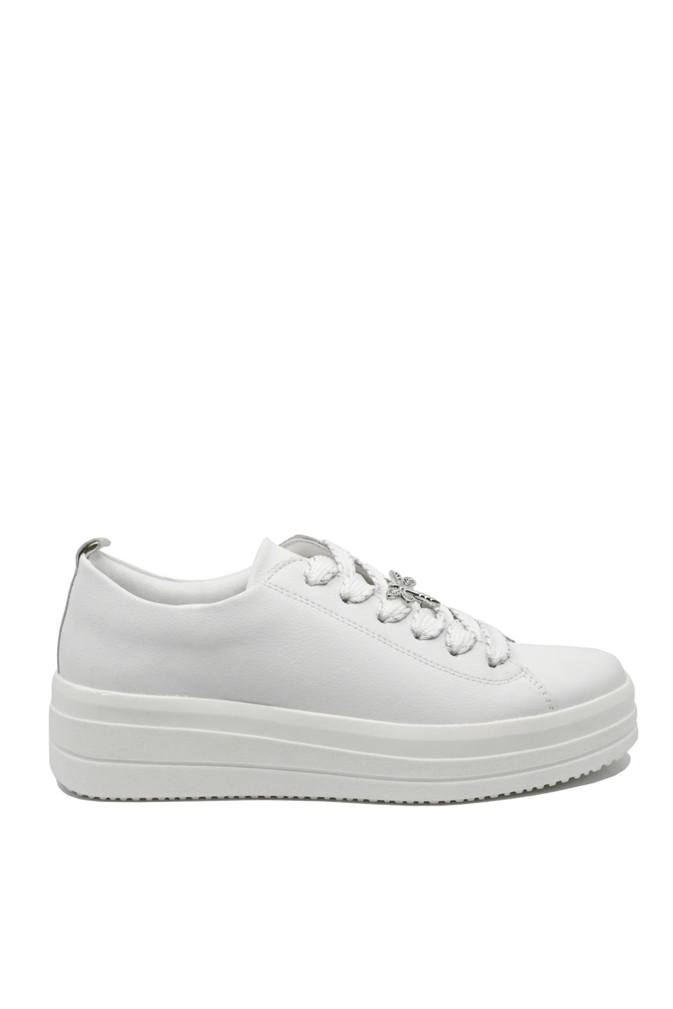 Pantofi sport albi simpli, cu un aer extrem de clasic, ce se evidențiază prin broșa argintie în formă de libelulă aplicată în față. Extrem de comozi, se asortează cu orice ținută de zi, indiferent de anotimp. Toate astea explică de ce este un model extrem de căutat în fiecare sezon.