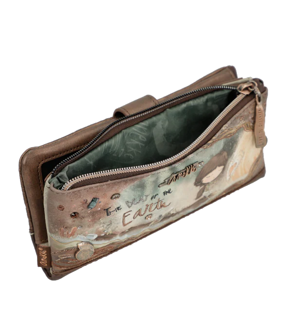 Portofel mare Anekke din material flexibil, cu două compartimente principale și protecție RFID împotriva plăților neautorizate. Închidere cu clapetă și fermoar. Portofelul face parte din colecția Core, dedicată seismologistului danez Inge Lehmann, om de știință important care a demonstrat compoziția straficată a pământului. Linia Core simbolizează călătoria în centrul pământului, simbolizată prin diverse forme, culori și texturi.