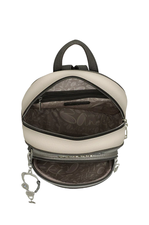 Rucsac Anekke de dimensiune medie cu un compartiment principal cu fermoar. Modelul face parte din colecția Sophia, un tribut către Hypatia, femeie astronom și filosof din antica Alexandria, dar și tuturor femeilor care îndrăznesc să iubească și să fie ele însele.