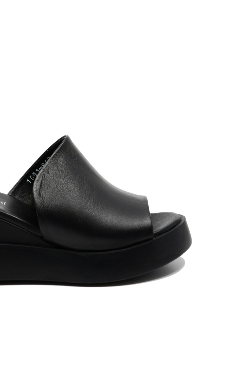 Saboți cu platformă negri din piele naturală cu care te încalți rapid, te simți înaltă atât cât trebuie, iar decupajul chic lateral completează look-ul special pentru tine.