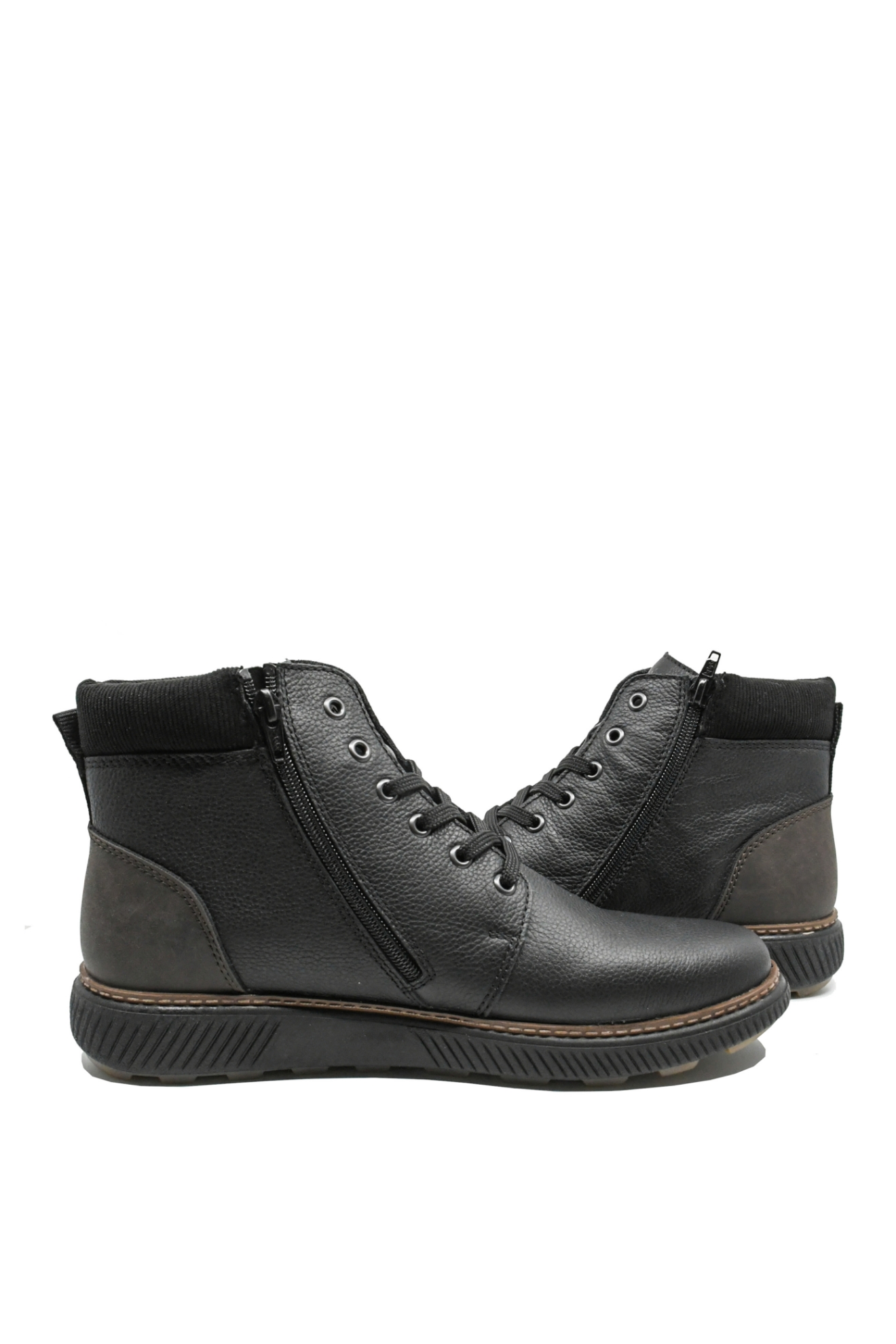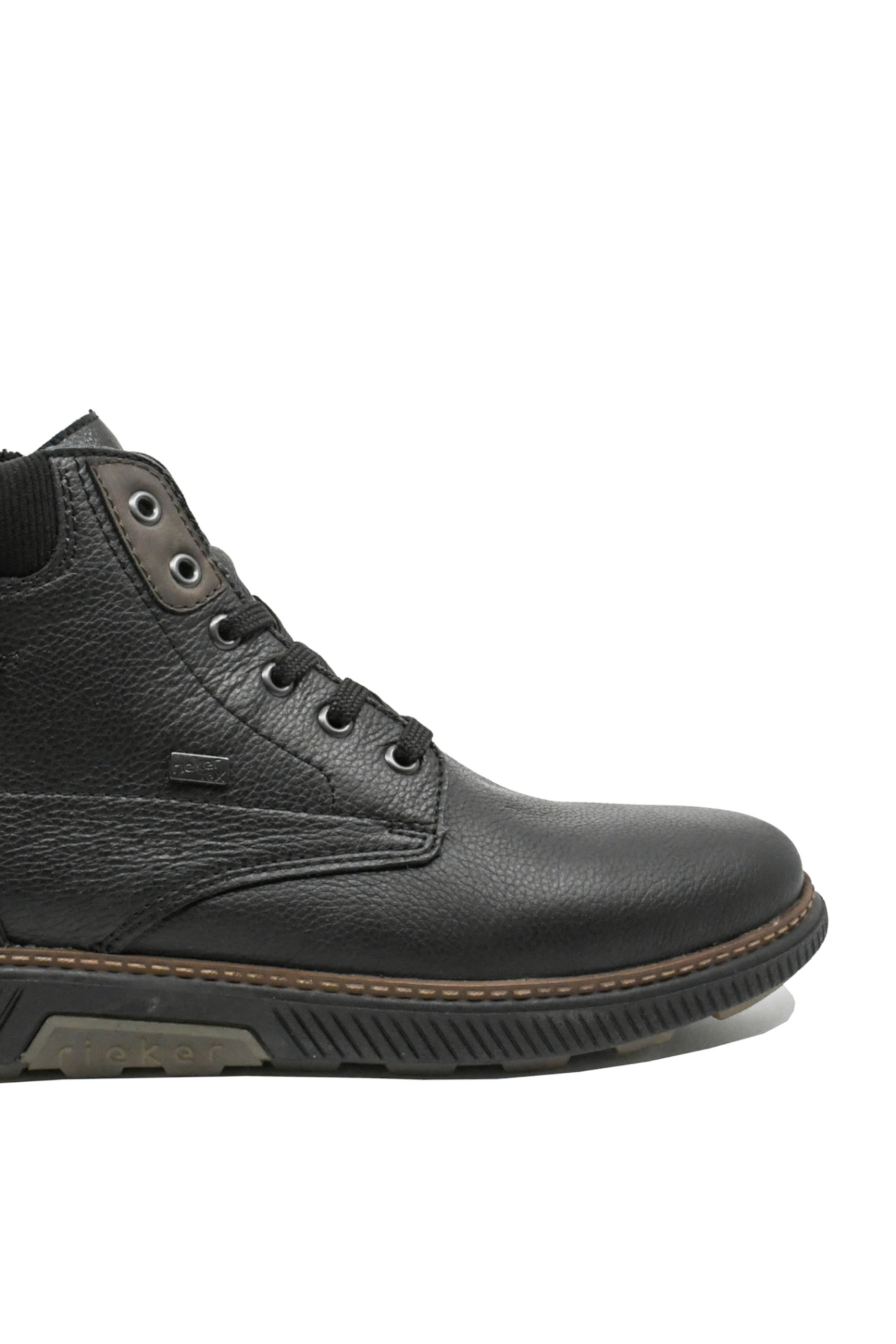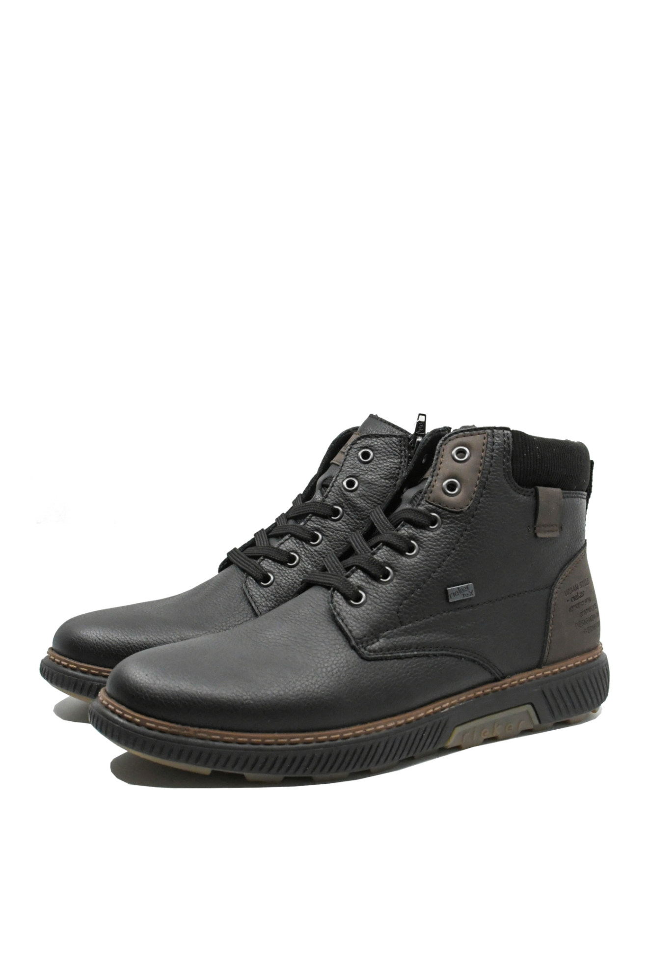 Bocanci bărbați Rieker, o opțiune ceva mai butucănoasă, din piele naturală cu granulații, calapod lat și interior călduros din lână naturală. Îi poți purta în diverse situații și momente, de la birou până la plimbări prin zăpadă.