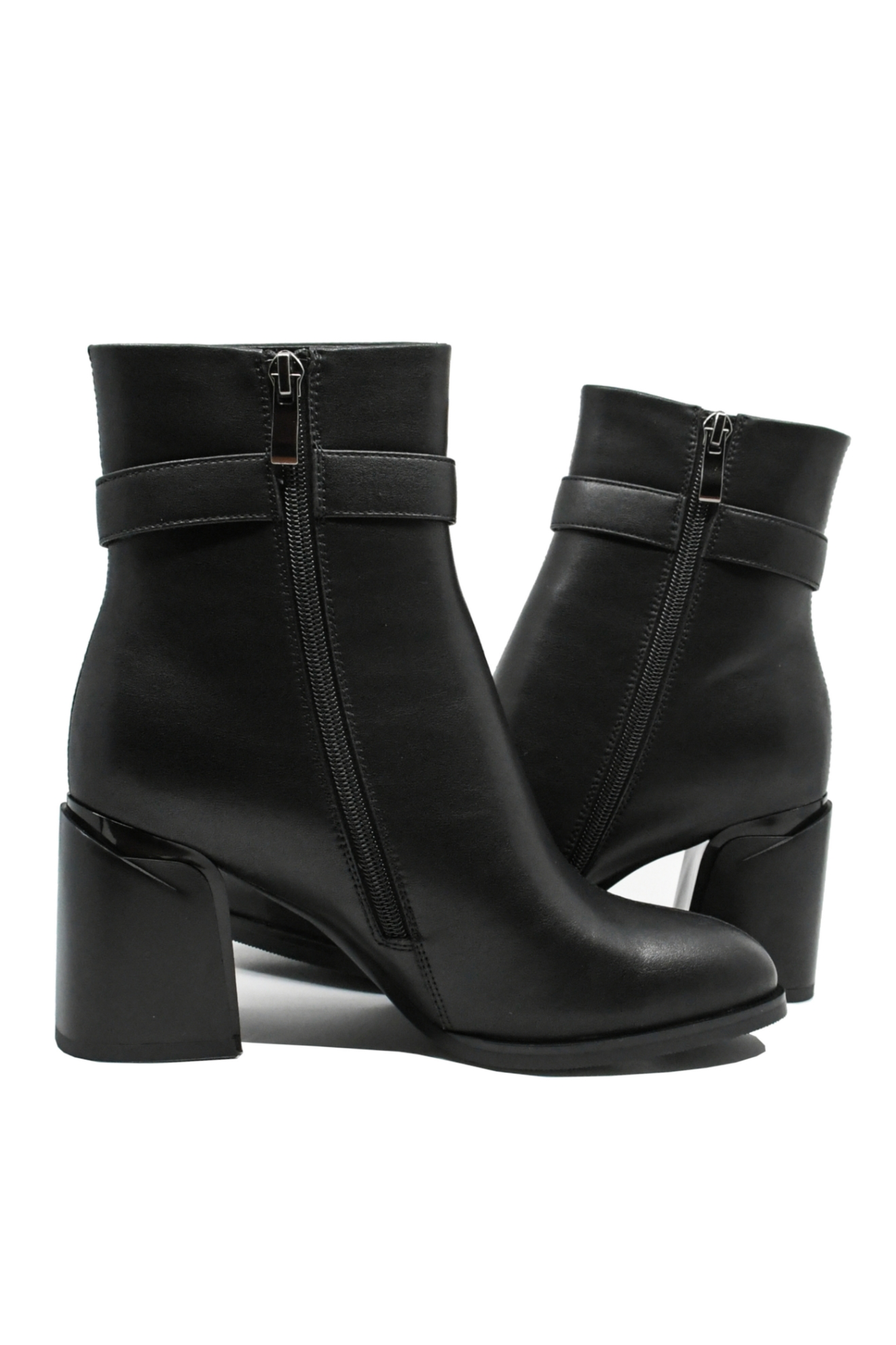 Botine damă office elegante, cu toc masiv stabil și comod în ciuda înălțimii, vârf alungit, interior pufos și baretă la gleznă cu cataramă metalică decorativă. Nici nu simți când pășești cu ele.