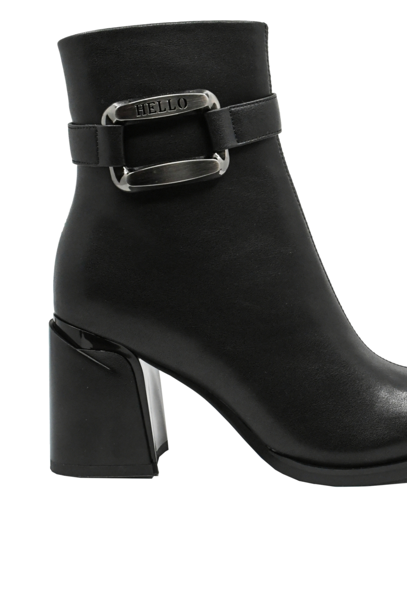Botine damă cu cataramă decorativă, negre, din piele naturală GOR102