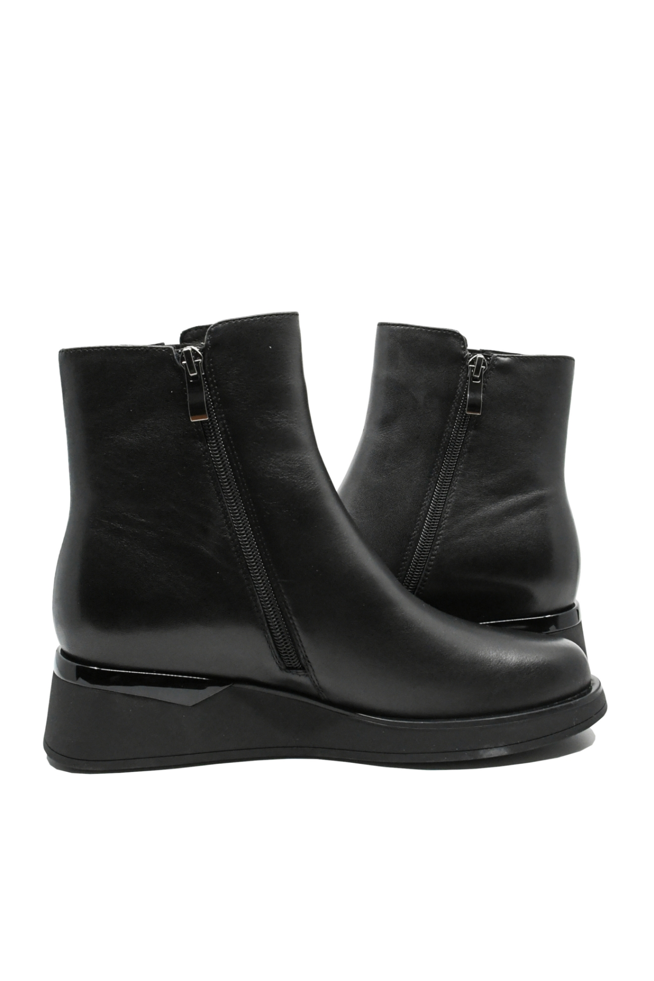 Botine damă cu linii clare și elegante, cu talpa wedge comodă, pentru lucru sau plimbare. Arată bine în orice moment, profesional și stilat în același timp, iar detaliile metalice discrete adaugă interes vizual.