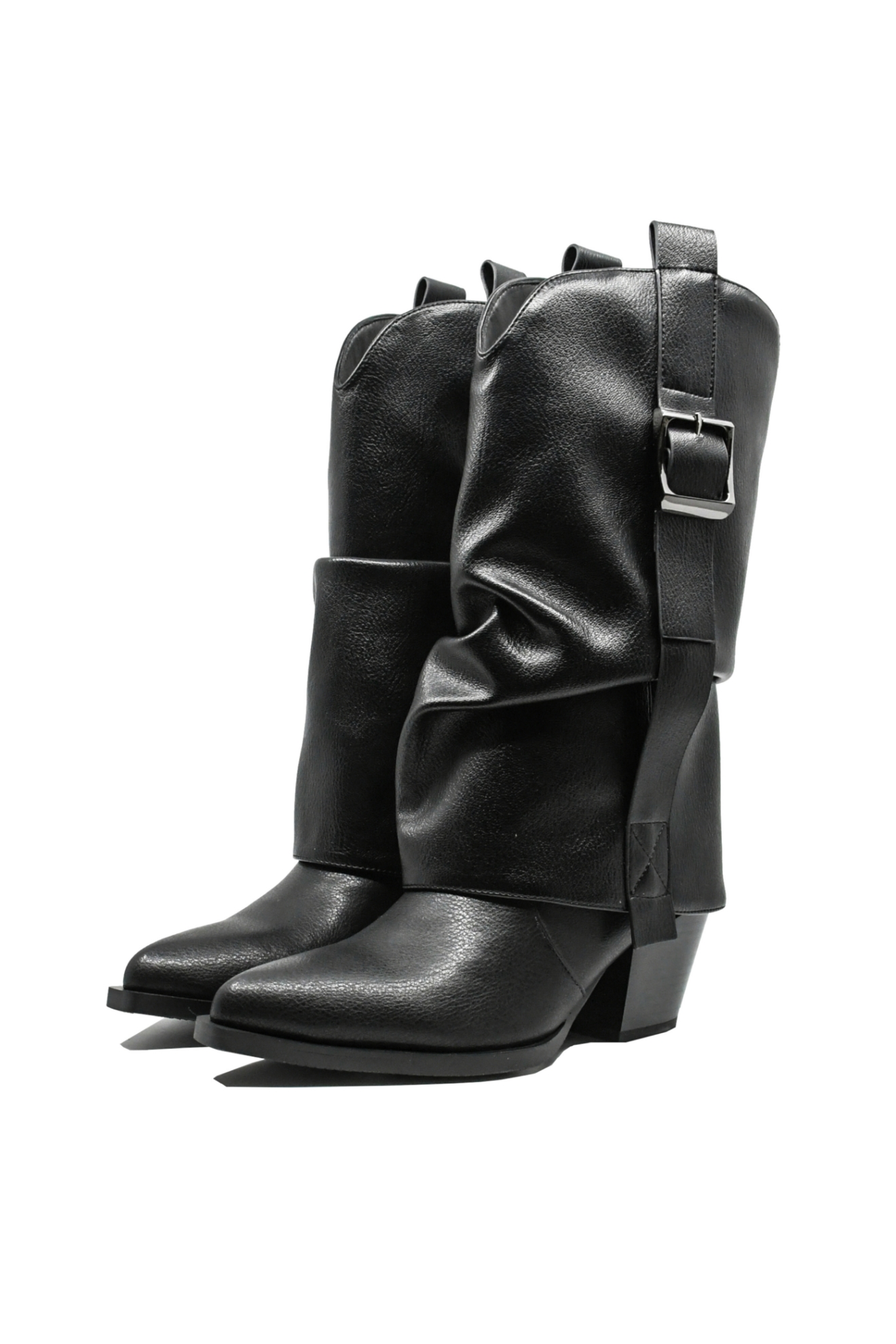 Cizme damă ciocate cu caârmb suprapus încrețit, ce creează ideea western de a purta pantaloni într-un stil foarte modern, elegant și confortabil în același timp. Un model în care poți dansa toată noaptea, poți ieși la plimbare sau la restaurant, te simți bine și faci senzație.