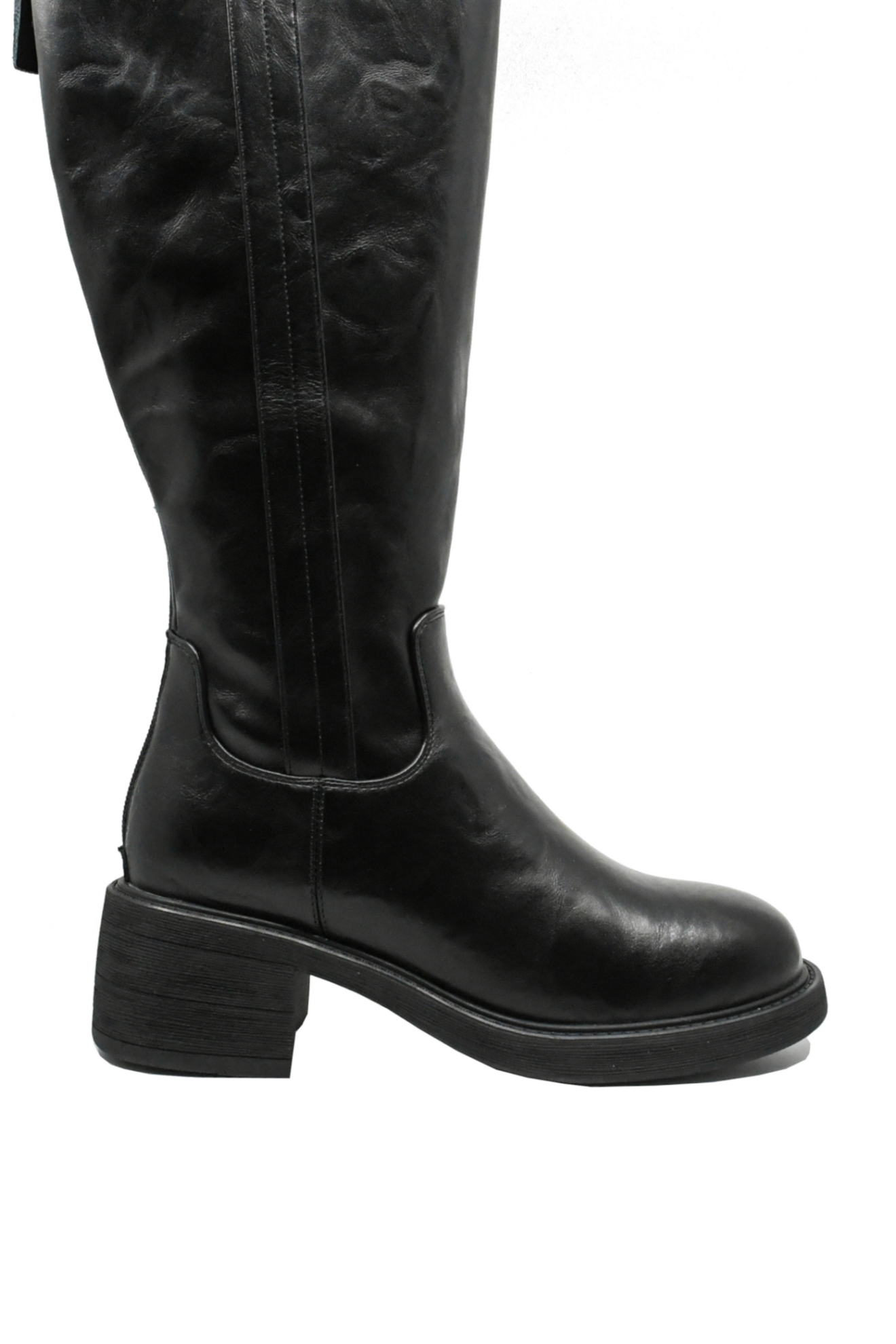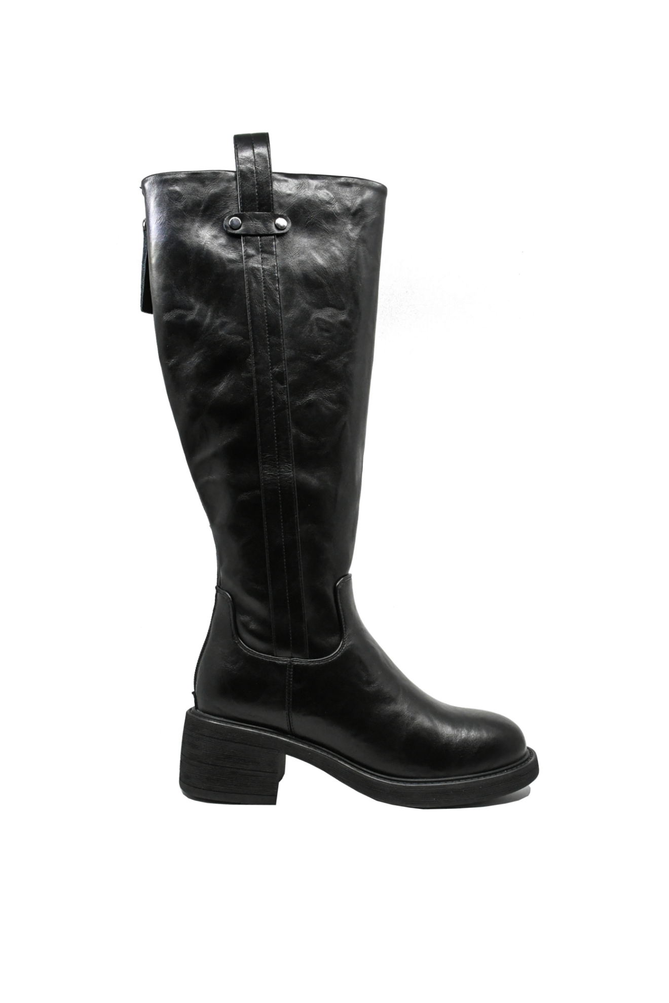 Cizme damă înalte tip riding, cu carâmb moale ce se așează perfect pe picior, talpa groasă și toc masiv mediu, foarte confortabile. Stilate și aspectuoase, ele vor fi cu siguranță motivul pentru care te vei putea plimba ore întregi fără să obosești.