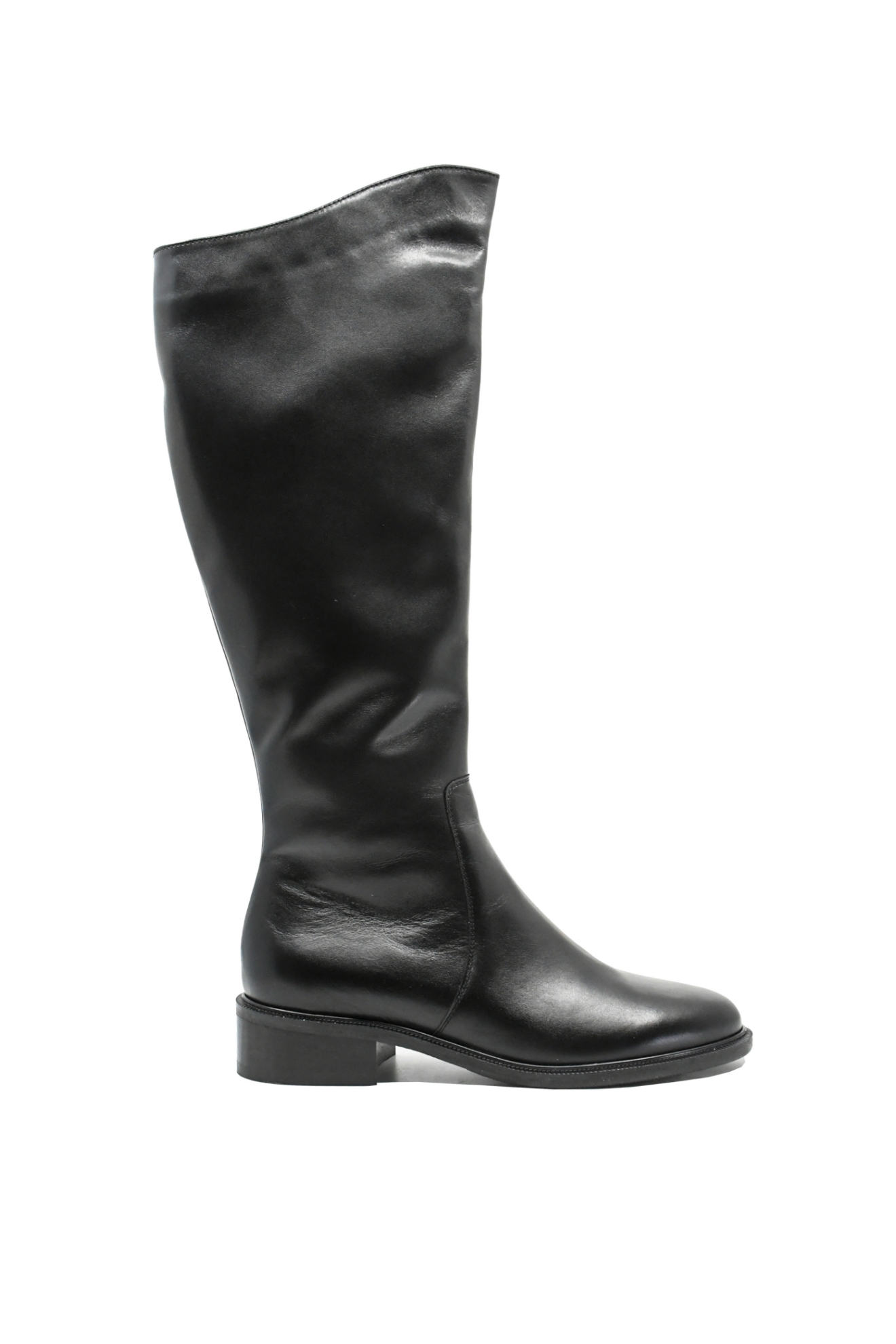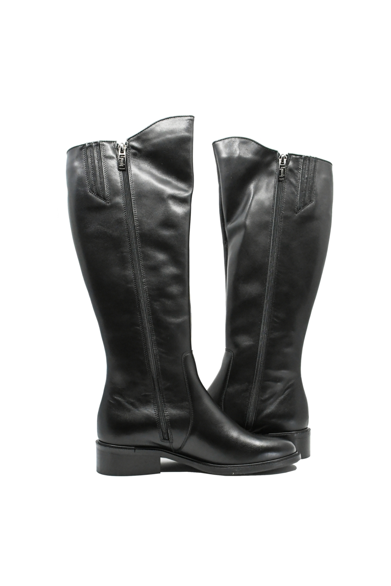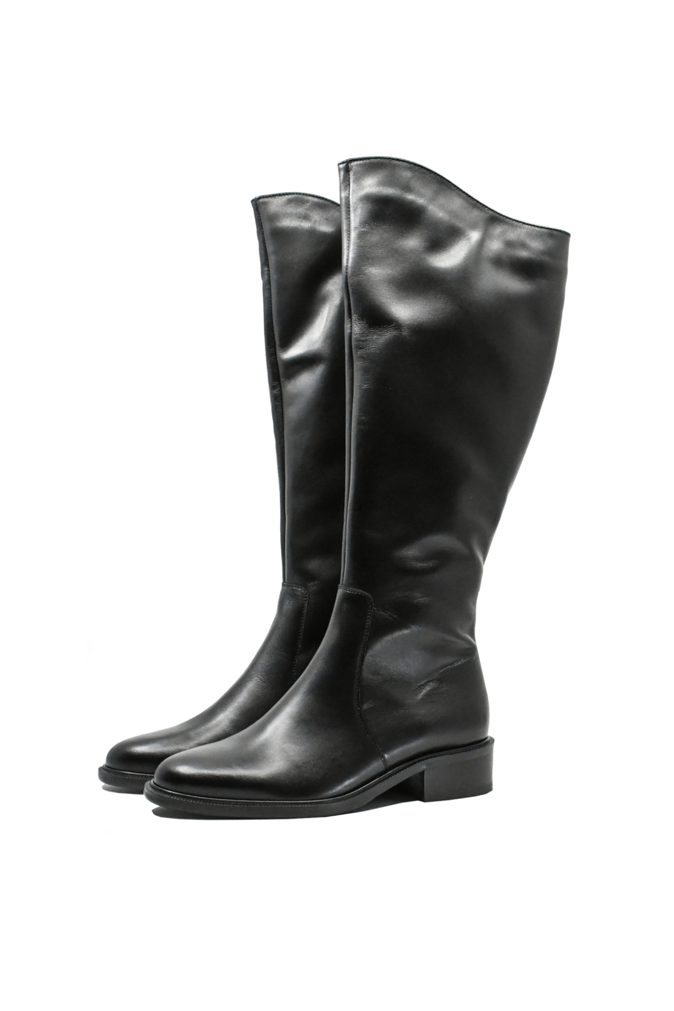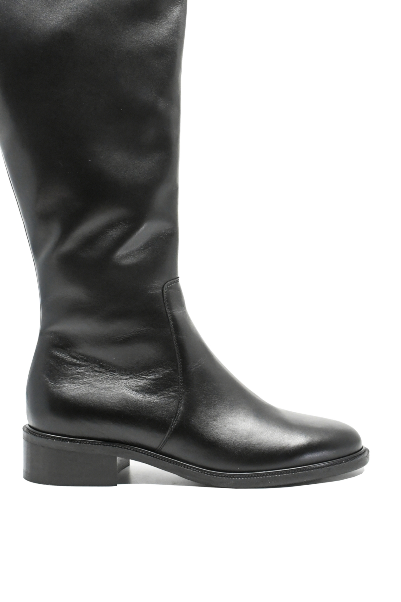 Cizme damă înalte până la genunchi, cu aspect ultrasofisticat, dar cu talpa joasă și toc mic comod. Le asortezi fără pic de efort, merg ușor cu orice rochie sau fustă de toamnă-iarnă.