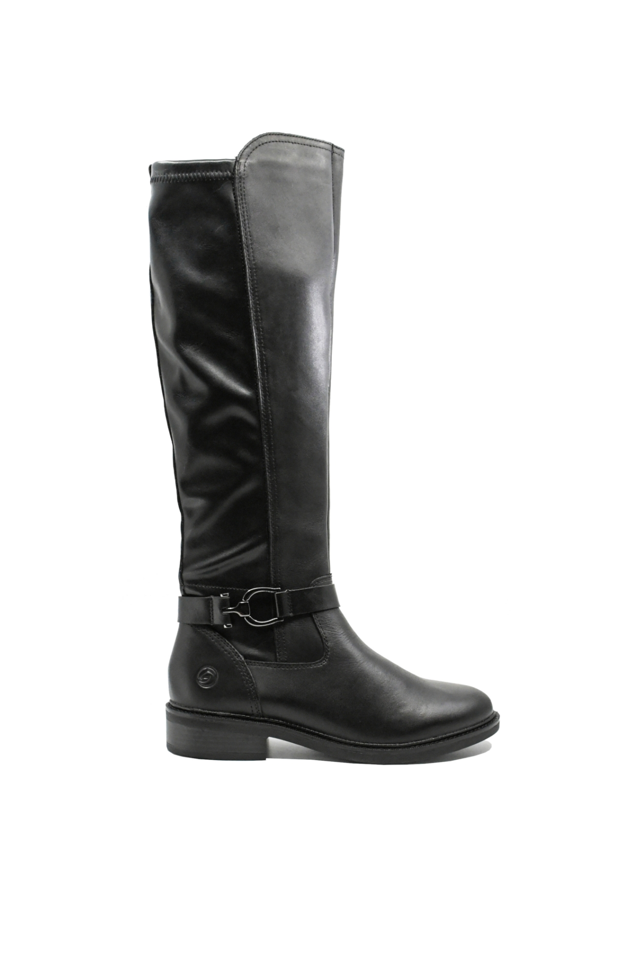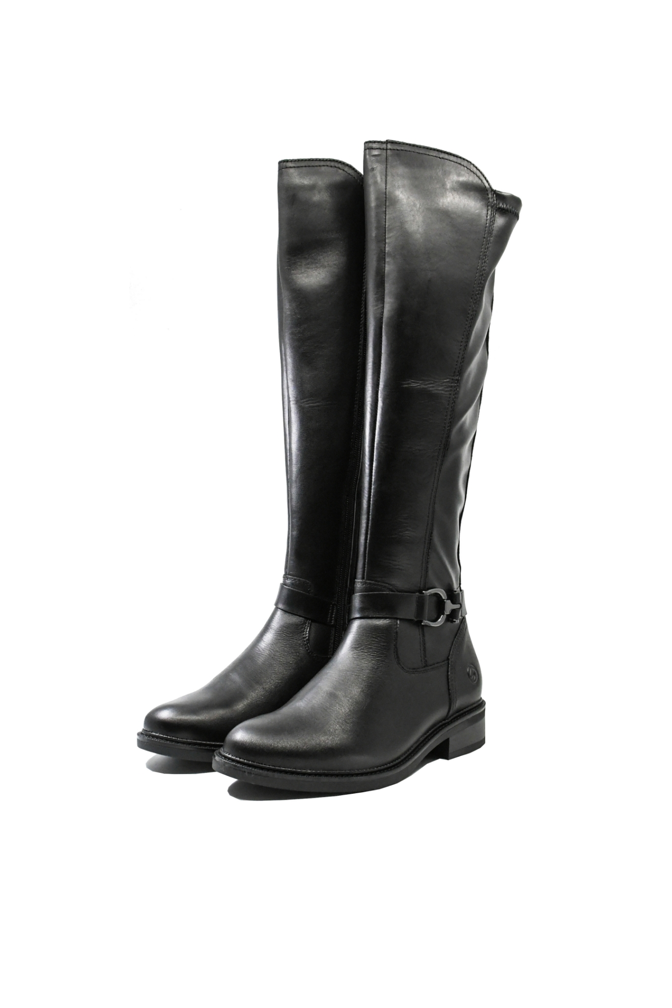 Cizme damă în stil ecvestru, înalte până la genunchi din piele naturală, cu interior căptușit și inserție din material flexibil în partea din spate ce se așează grozav pe picior.