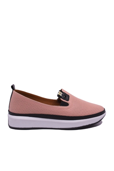 Pantofi decupați cu toc clepsidră, roz pudră, din piele naturală MIR824