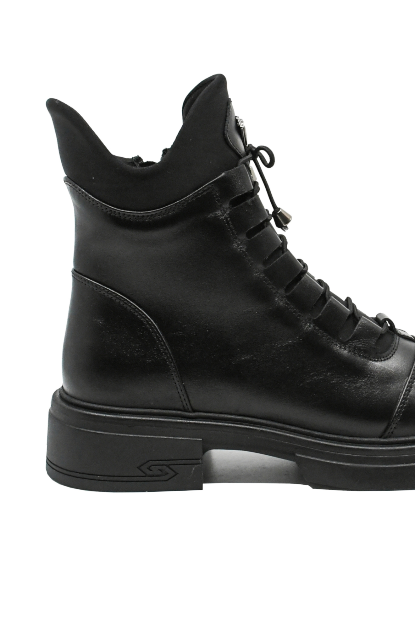 Ghete damă ankle cu inserție elastică la gleznă, șiret subțire decorativă, aplicație metalică ăn formă de diamant, vârf rotunjit spațios pentru degete și talpa mai groasă, comodă.