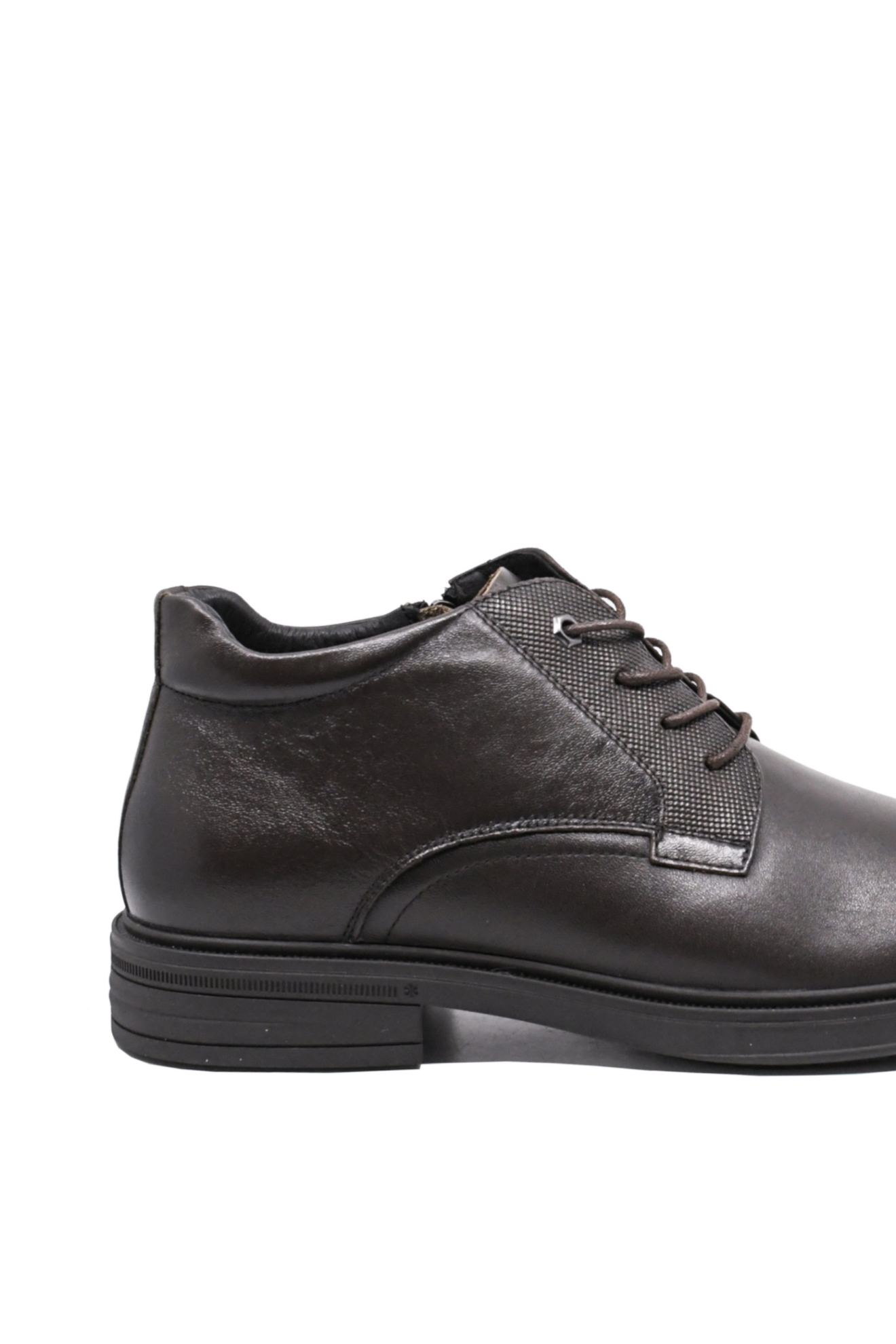 Ghete bărbați elegante, suple, versatile, cu aspect lucios, simplu, până la gleznă, în stil tradițional oxford, puțin mai sofisticat și interior călduros din blăniță. Te simți confortabil și stilat toată ziua, chiar și când e iarnă.
