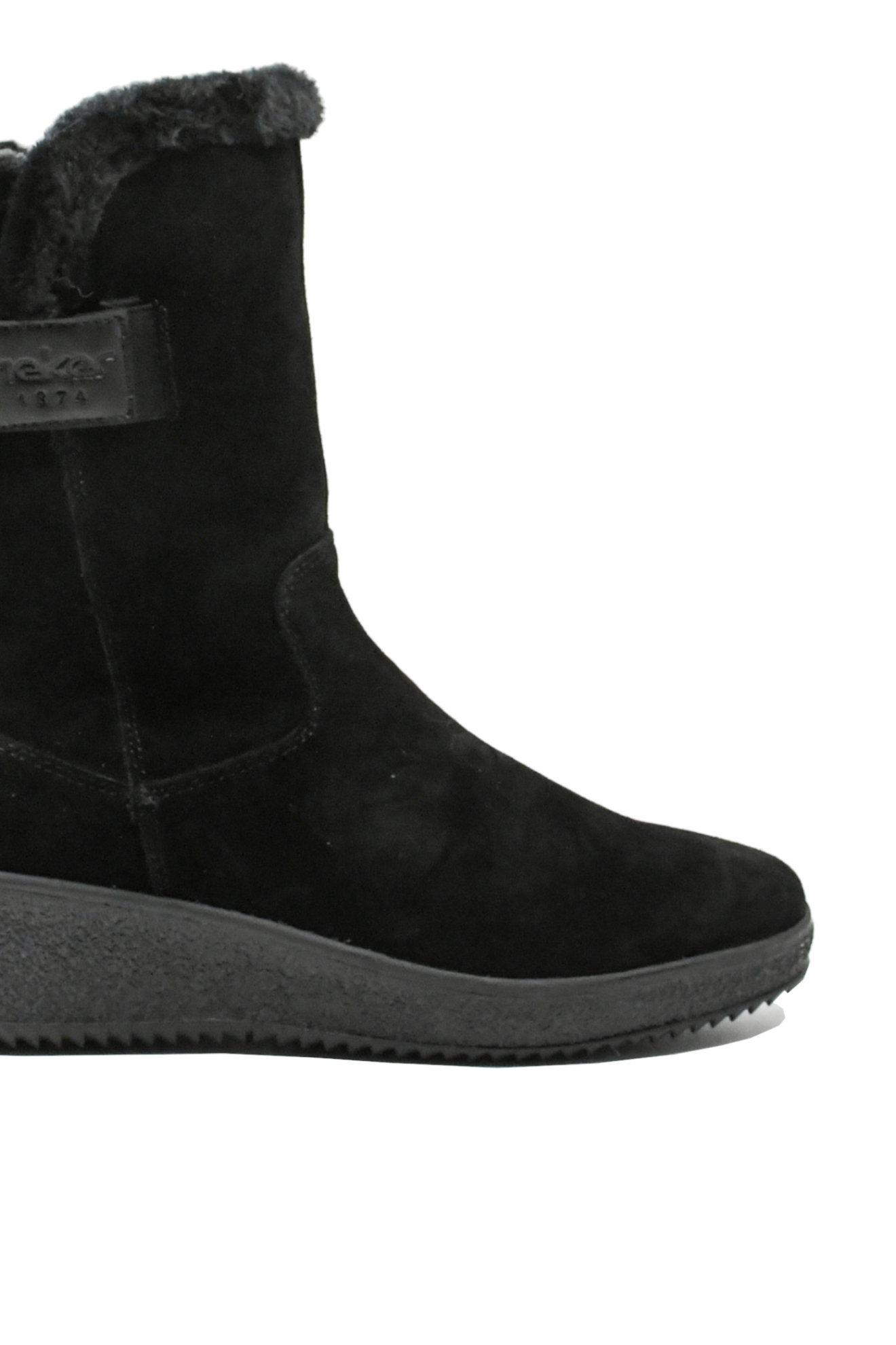 Ghete damă relaxate, la intersecția dintre preț, design și confort. Interior și coroniță de blăniță, talpă joasă ortopedică pentru cea mai bună distribuție a greutății și exterior catifelat atractiv pentru ochi.