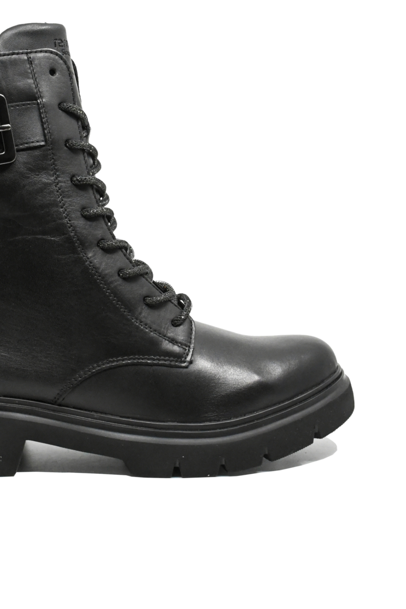 Ghete damă cu șireturi până sus și interior călduros, cu care poți merge îndelung prin zăpadă. Stilul combat clasic, cu detalii decorative moderne este foarte îndrăgit la orice vârstă.