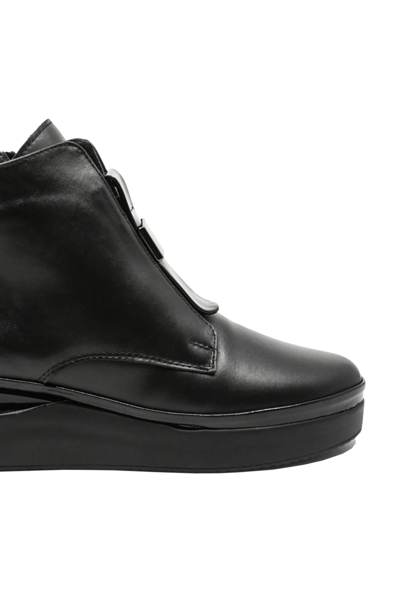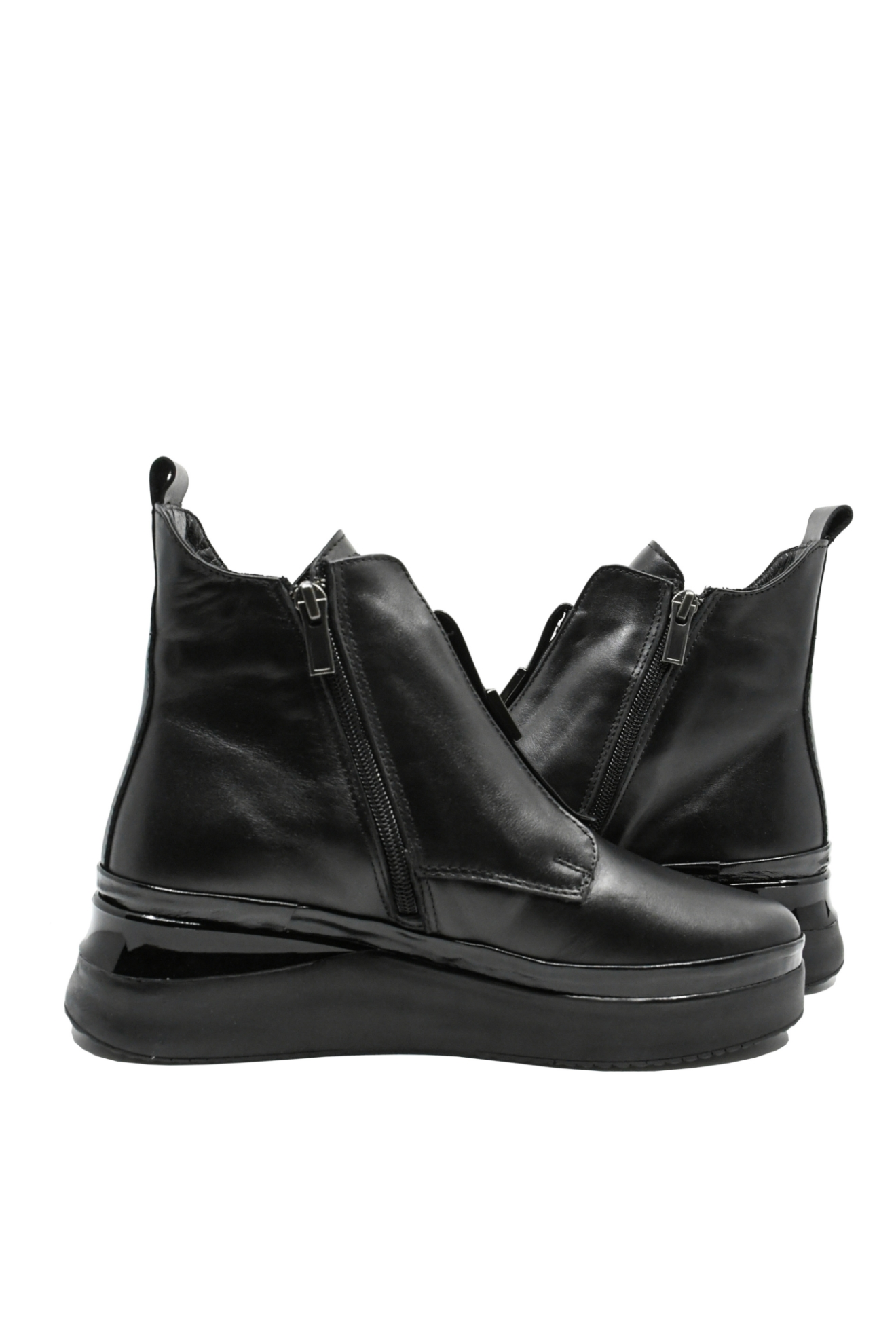 Ghete damă până la gleznă, micuțe, finuțe, cu talpa ortopedică puțin înaltă, din piele naturală cu accente din lac și metalice, destinate să-ți asigure maximum de confort și tracțiune, atunci când ai nevoie cel mai mult.