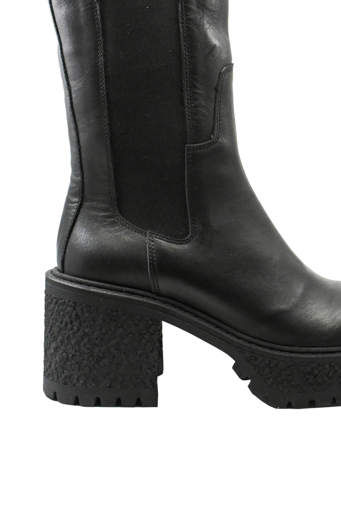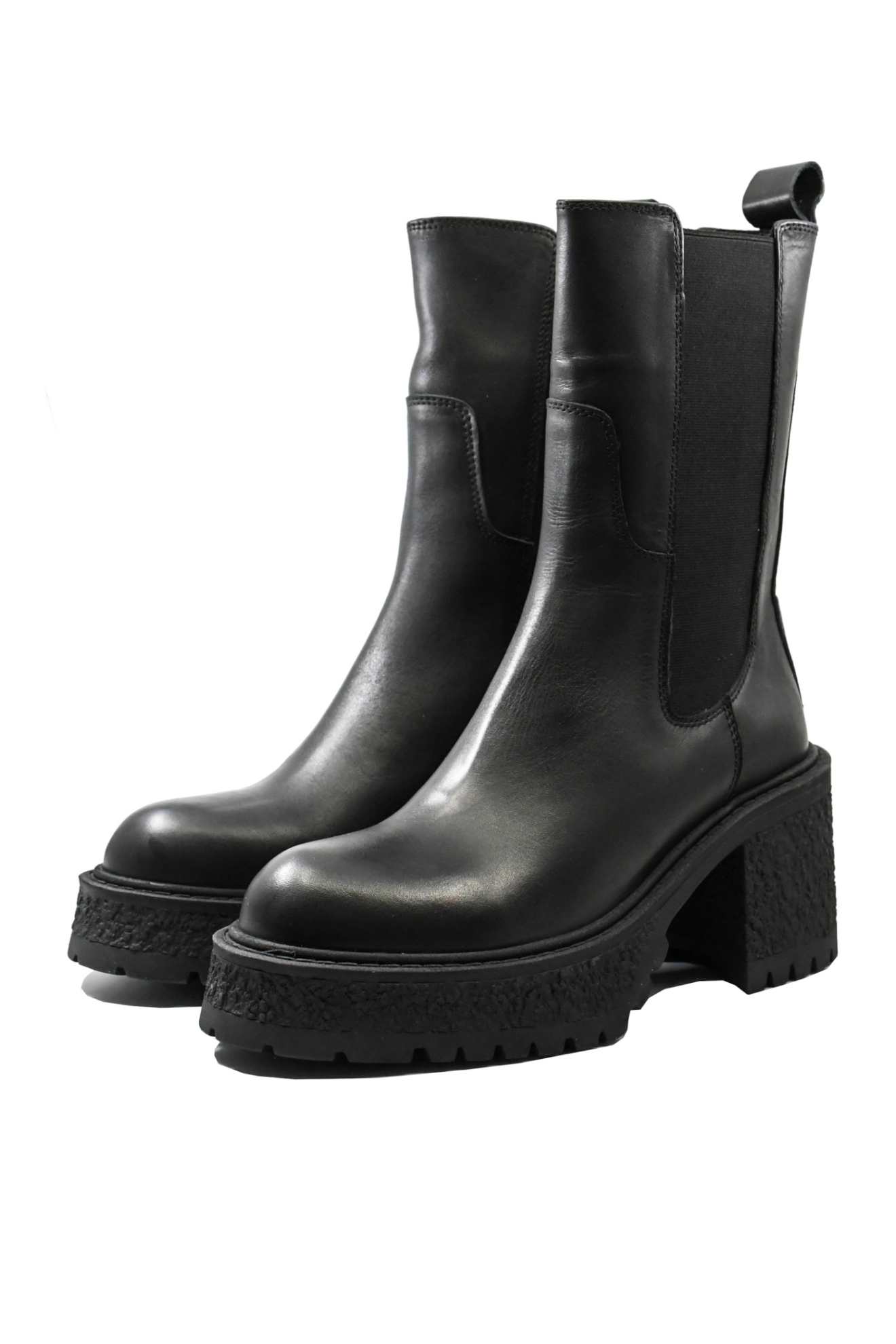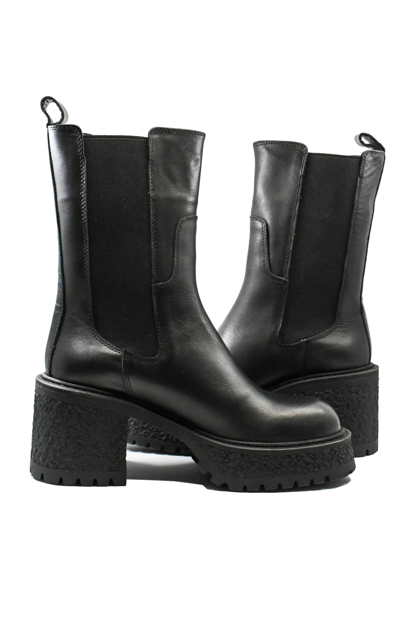 Ghete damă model Chelsea fără închidere, cu inserții elastice laterale și platformă masivă, un design menit să impresioneze. Confortul este asigurat, la fel și plusul de înălțime, iar stilul versatil este ușor de asociat cu orice ținută.
