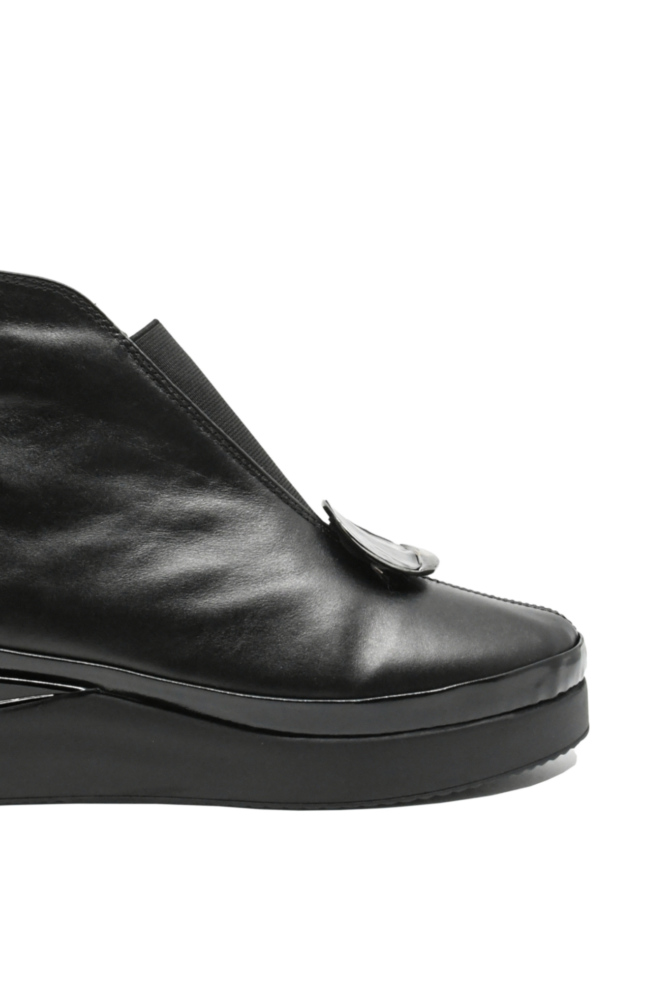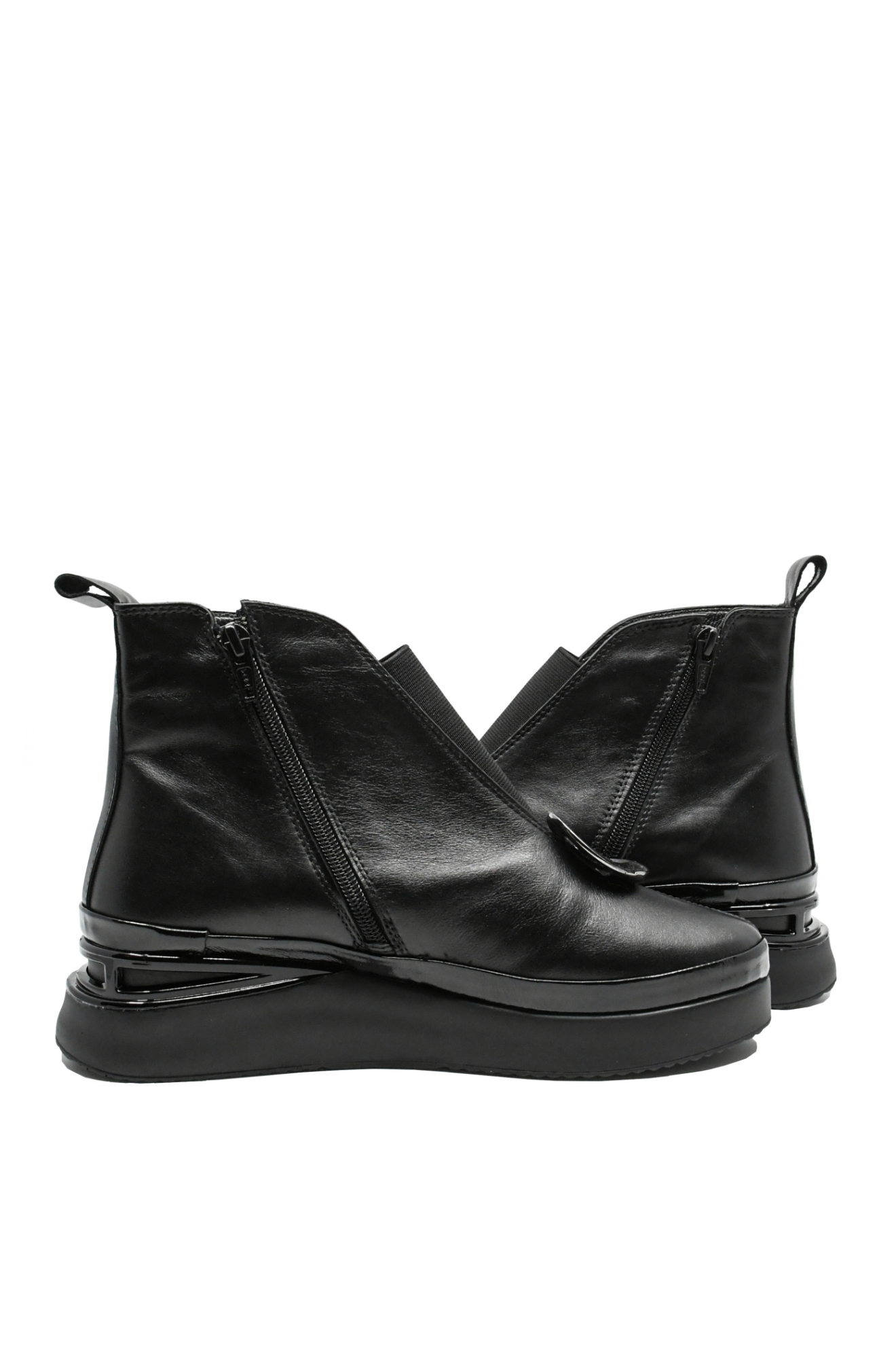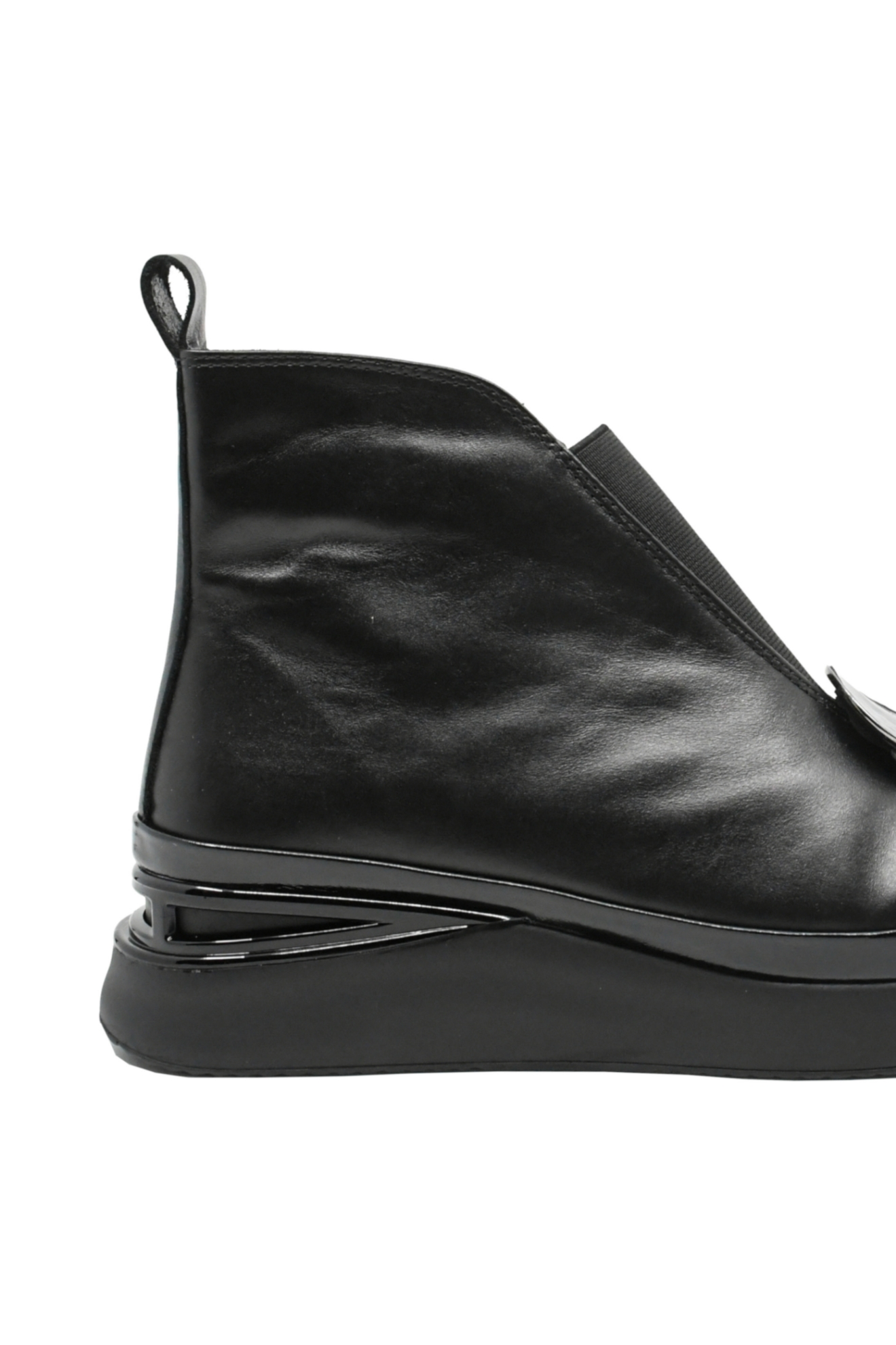 - Talpă înaltă 2 cm cu margine din lac și detaliu lucios la călcâi