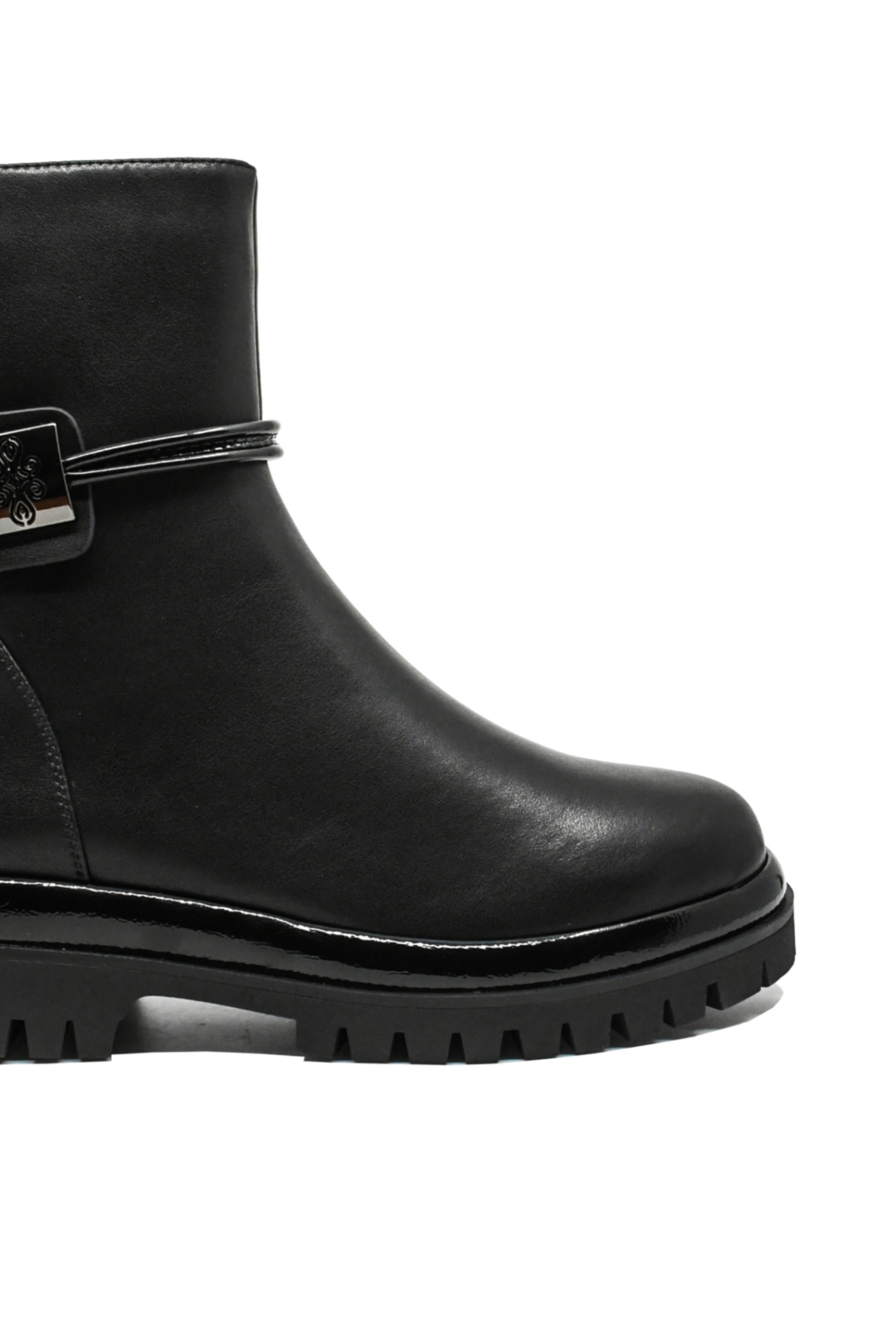 - Talpa înaltă 3 cm și toc masiv 4.5 cm, cu crampoane mari