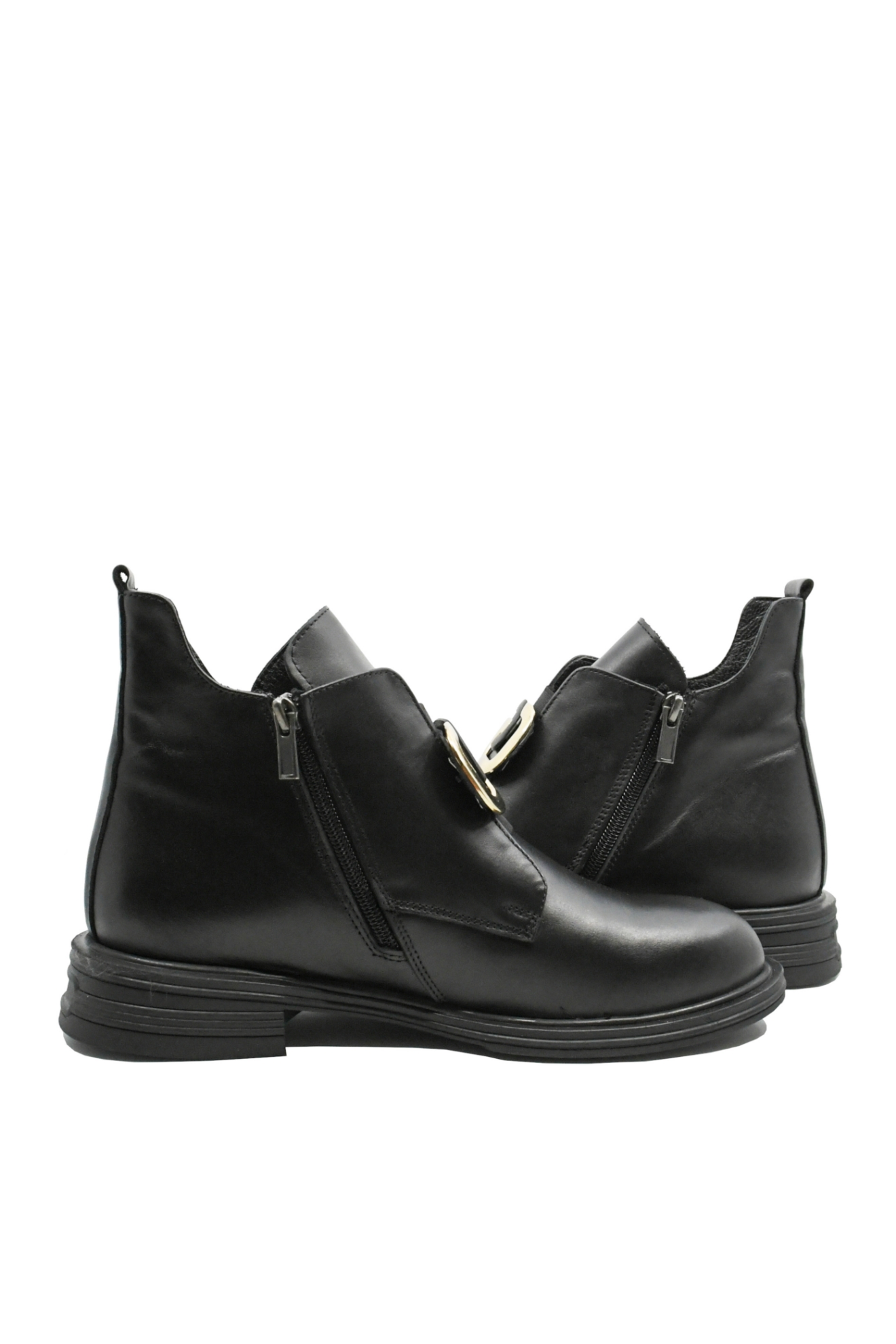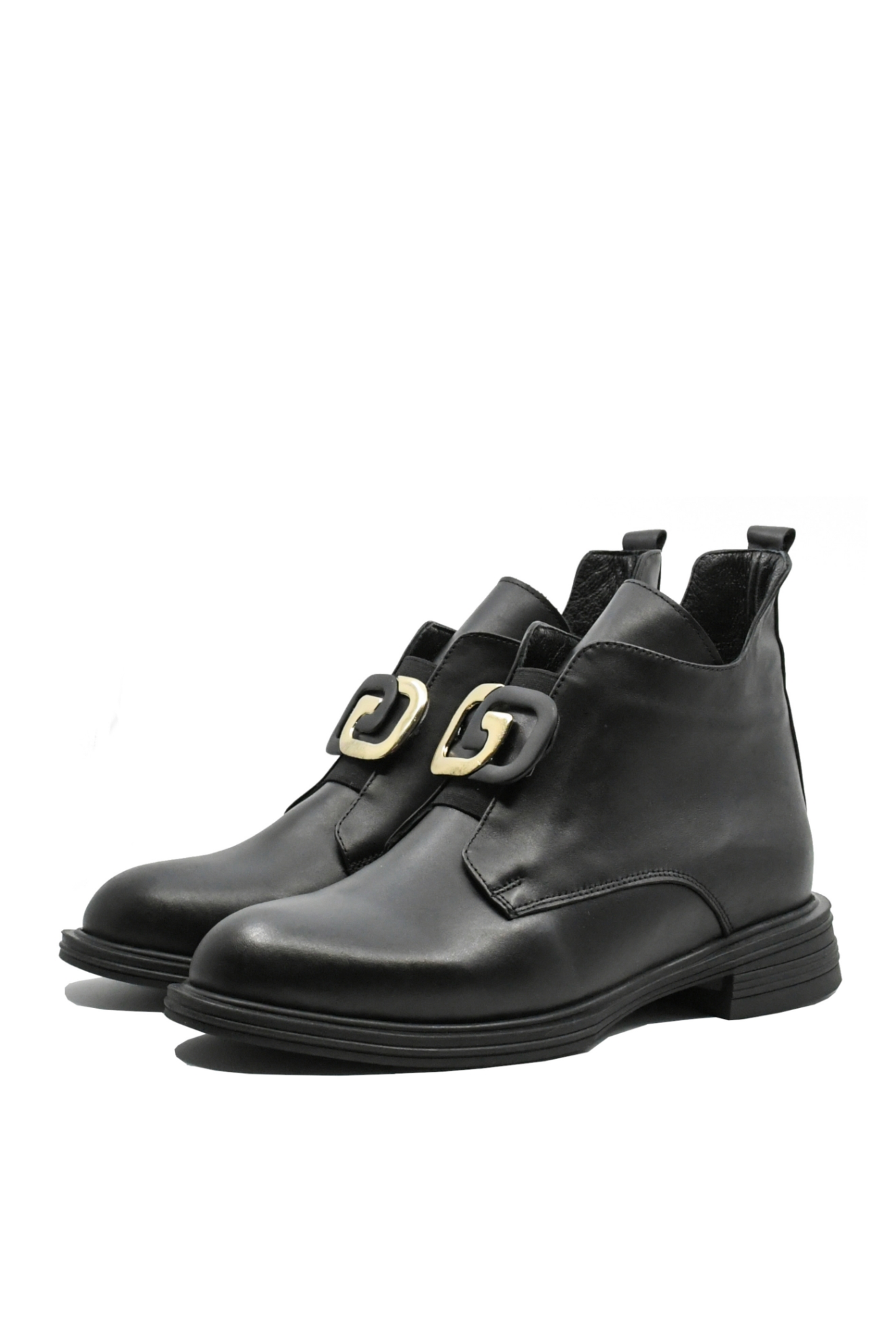 Ghete damă cu personalitate, toc mic ușor de purtat, piele moale și decorațiune deosebită negru cu auriu. Le încalți rapid și le porți în fiecare zi sau seară, la serviciu sau la plimbare.