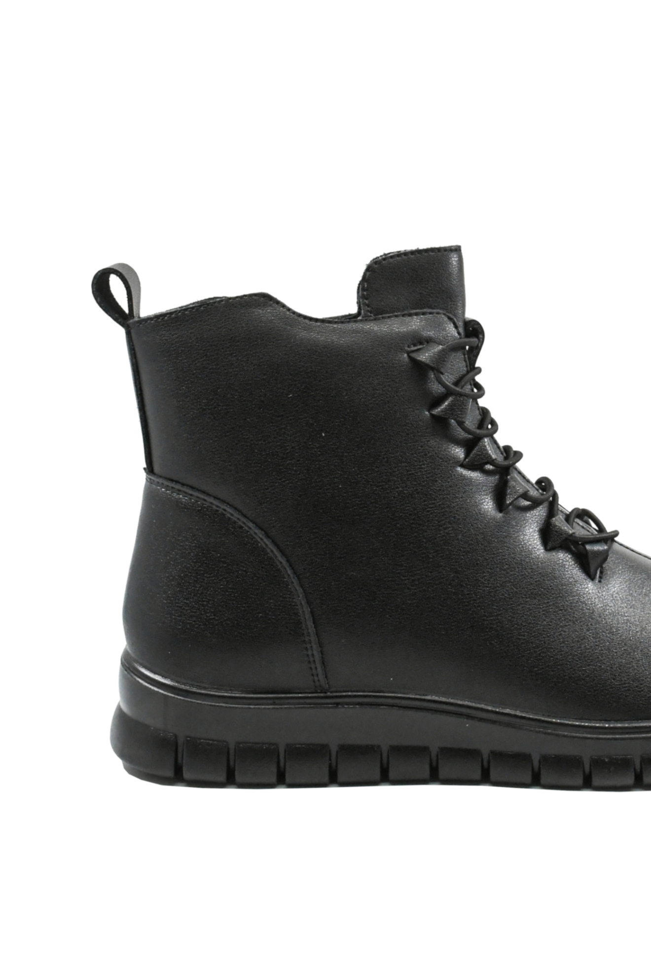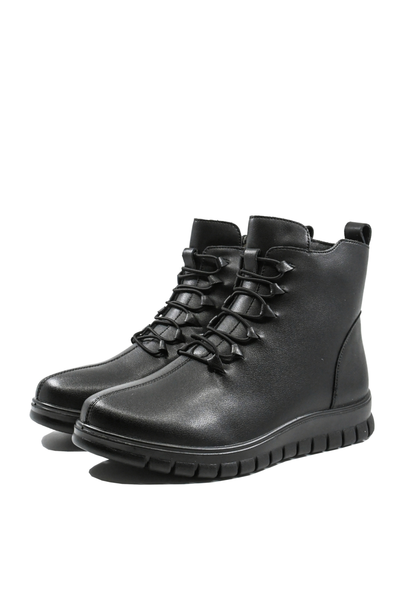 Ghete damă cu talpa aproape plată, foarte confortabile, pentru cele care își doresc ceva mai finuț, mai puțin voluminos, dar care se evidențiază frumos prin șireturile decorative deosebite.
