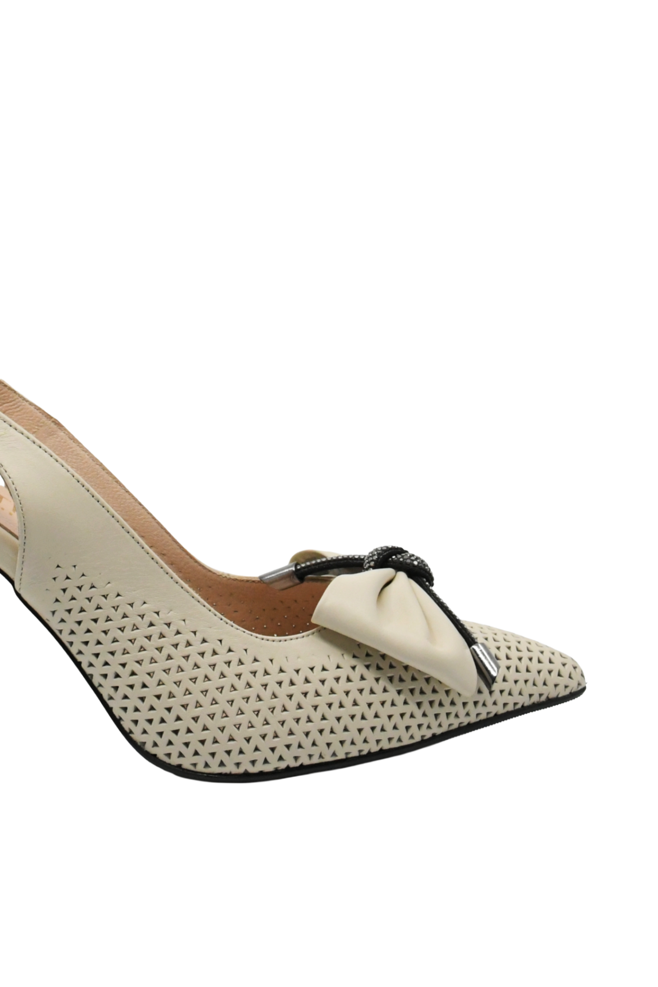 Pantofi decupați eleganți din piele naturală cu toc kitten stiletto în 5 fațete, pattern perforat geometric și fundiță cu șiret strălucitor, potriviți pentru orice personalitate plină de entuziasm. Un look clasic frumos actualizat, de purtat ani la rând, la toate ocaziile tale speciale.