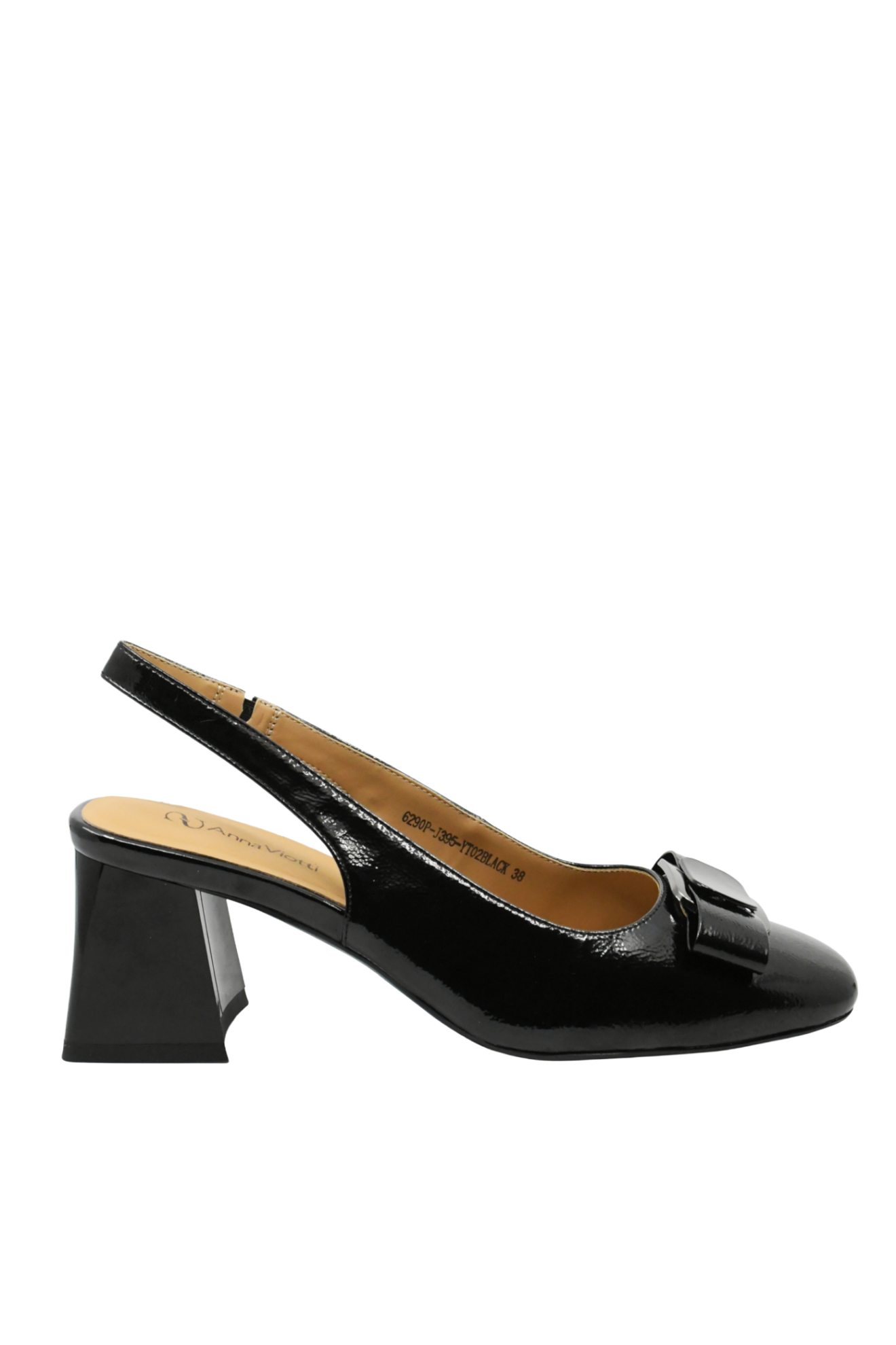 Pantofi superbi din lac, decupați la spate, cu toc butucănos, vârf pătrat și fundiță decorativă. Asorteazaă-i cu un costum sobru la serviciu, sau cu o rochie elegantă pentru o ieșire de seară. Stilați, confortabili, un model trendy cu look clasic, perfect pentru ocazii formale sau de business.
