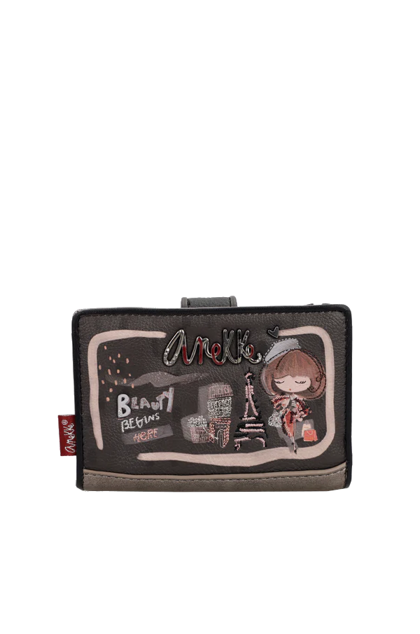 Portofel mediu Anekke cu protecție RFID, fermoar și clapetă. Modelul face parte din colecția Mademoiselle, inspirată din esența Parisului și povestea femeii care strălucește prin autenticiatea ei. Fiecare model este creat cu o notă de sofisticare, amintind faptul că frumusețea începe în momentul în care îndrăznești să fii tu însăți.