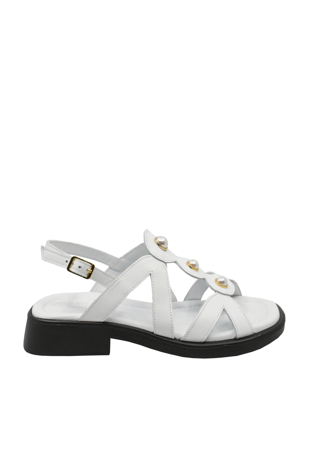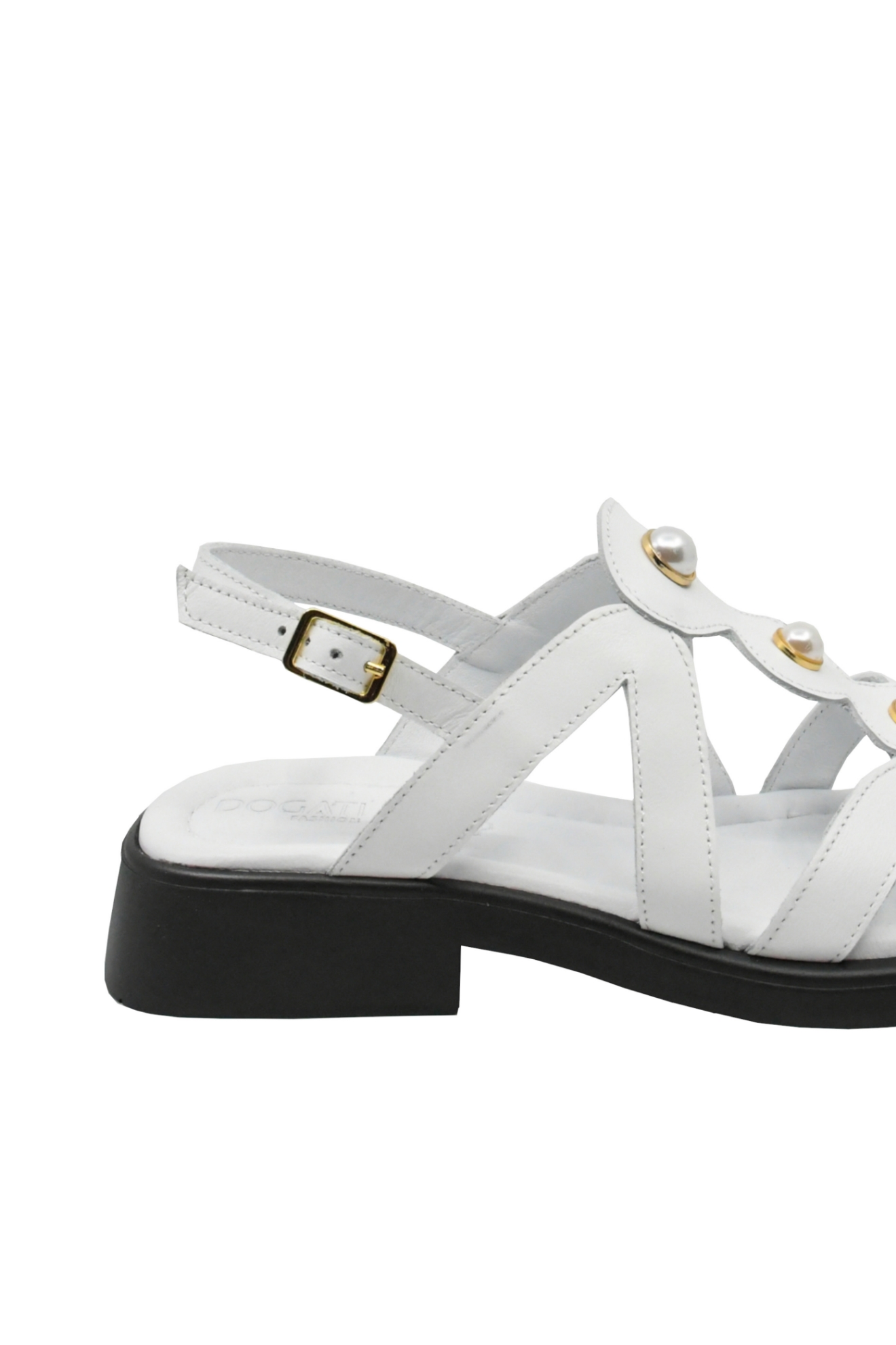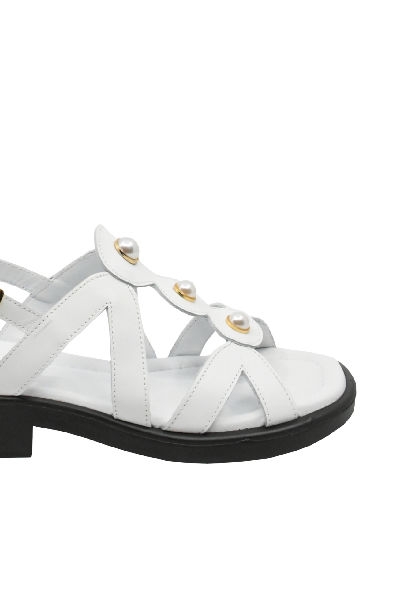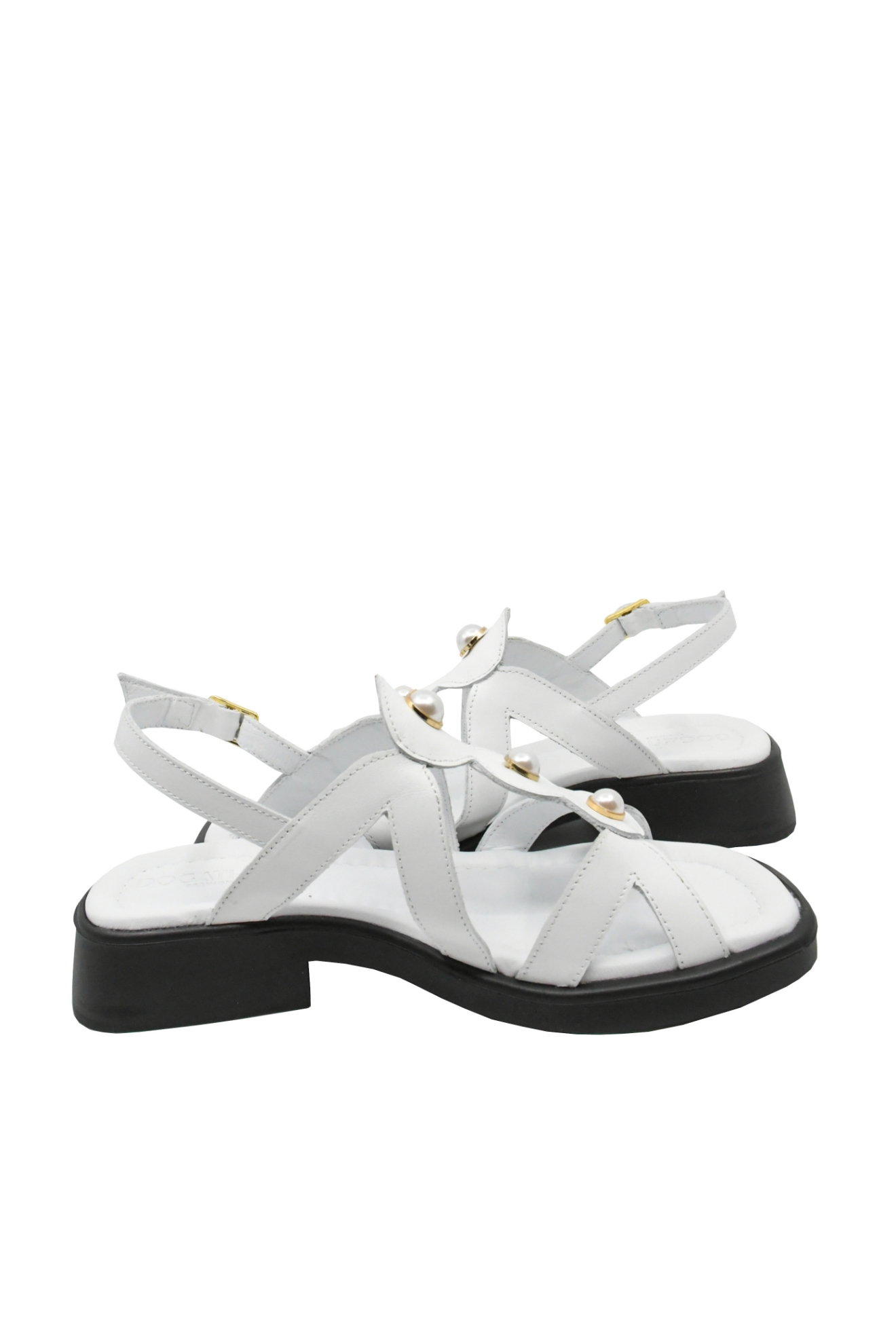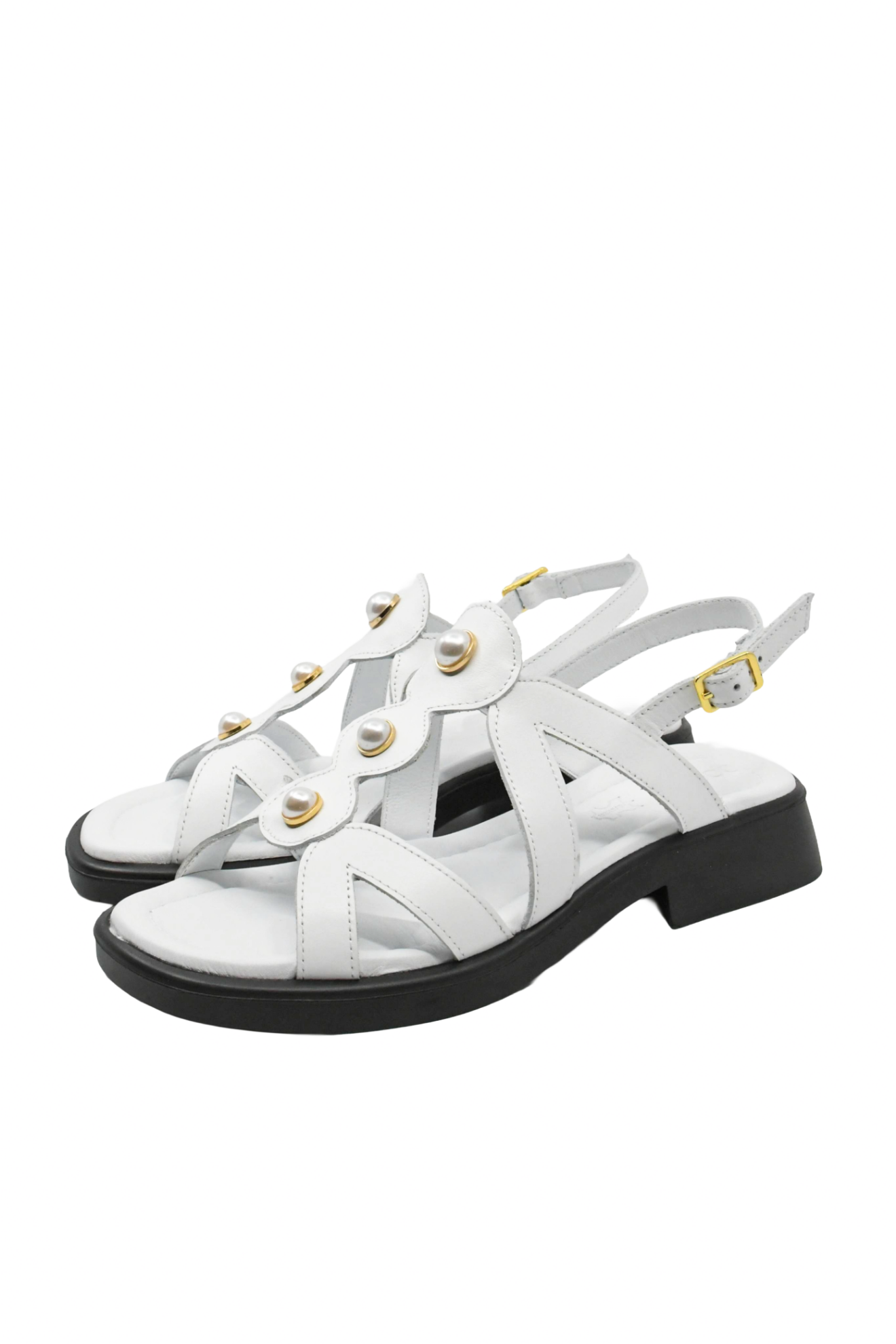 Sandale damă cu numeroase barete și perluțe aplicate în față, toc mic ușor de purtat și vârf pătrat care îți complimentează pedichiura. Le porți fără probleme ore întregi și te umpli de energia lor proaspătă.